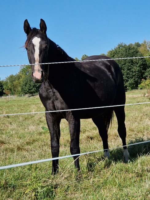 Reining offspring with wow factor - Black Quarter Horse stallion with great pedigree - Location: 29227 Celle Treats N Diamonds - a beautiful young Quarter Horse stallion with an excellent foundation, strong joints and very good muscling. He is already well developed and healthy. His correct conformation, his harmonious appearance and his great color (black) make him a real eye-catcher with future potential - both in sport and leisure. Born in 2024 with a final height of approx. 152 cm. Tristan grew up in a stallion rearing facility and is well socialized. He is friendly, curious, people-oriented and eager to learn. He already knows the vet and farrier, is halter trained, vaccinated and wormed according to his age. His pedigree leaves nothing to be desired: He comes from a first-class reining line and is NRHA Germany registered. Tristan is a son of One Shiney Treat, a son of the 10.2 million dollar sire Shining Spark. One Shiney Treat's dam, HAGANDAZ, is a Money earning& producing GRAYS STARLIGHT daughter. She has won $49,289 in NCHA & NRCHA events, and produced successful performance offspring, totaling over $65,616 (NRHA, NCHA & NRCHA). Tristan's dam, Miss Tiffany Chic, was successfully shown and is a Puro Chic daughter. Tristan's siblings from the same dam line have already been successful in the sport of reining (Open). A current 6-panel test is available through the parents and additionally through his own test - he is N/N. Treats N Diamonds will be sold with AQHA papers and an equine passport. Thanks to his first-class reining pedigree and the NRHA Germany deposit, all avenues are open to him - be it in sport, at shows or as a versatile leisure partner.