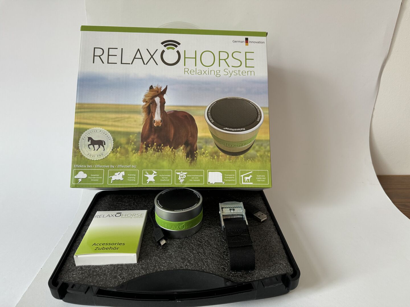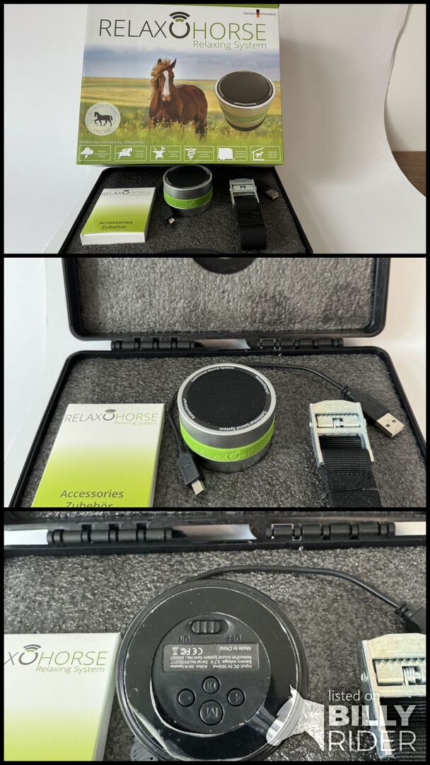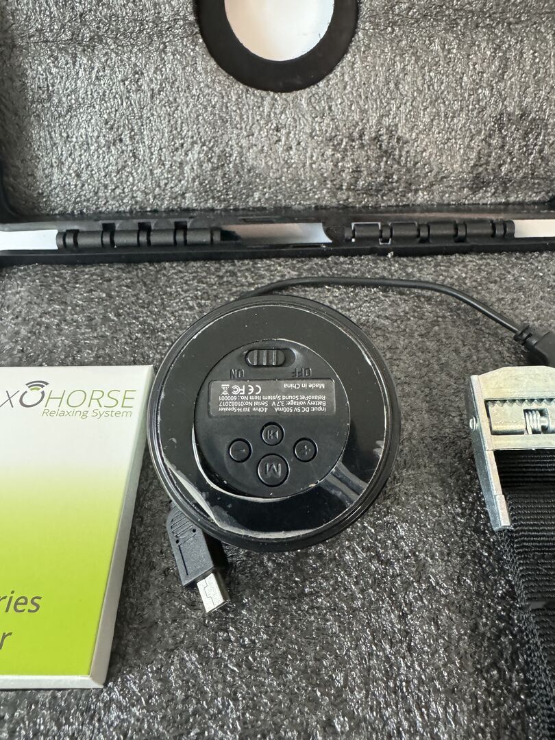 Relax Horse +++ Known from "Die Höhle der Löwen" +++ Deep relaxation for horses The innovative Relaxo Duplex sound module for horses was developed in over 4.5 years of research and development work specifically for high-frequency deep relaxation of horses and is suitable for any unbalanced horse, regardless of age and breed. Relax for Horses successfully helps to avoid these stressors, whether in the stable, stable aisles or in a non-animal environment, because Relax Horse works independently of a power socket thanks to its battery operation. The individual volumes of the Relax Horse sound worlds can be continuously adjusted by the user to the respective application situation and ambient volume of the animal. The Relax Horse sound module works with its special sound versions tailored to the sensitive hearing of horses, allowing the horse to relax deeply. The owner can choose whether the Relax Horse sound module works with or without additional relaxation music; a simple switch is all it takes for RelaxoPet to work silently for the human ear. Relax Horse can reduce anxiety and stressors in horses Anxiety is initially a natural and helpful reaction of the body. It protects the horse from seemingly life-threatening situations. In the first instance, fear will trigger a flight instinct or similar in the horse. This manifests itself in panicked running away, other animals become extremely jumpy or even aggressive. RelaxoPet can reduce these stressors and works via the animal's hearing, coat and hoof thanks to its high-frequency sound waves. Areas of application for horses Weaning of foals Training stress Aggressiveness General anxiety General calming Change of owner Stall rest Destructive behavior Misbehavior Fireworks Thunderstorms Panic Hyperactivity Lack of social behavior Hoof work Veterinarian visits Rank order disorders Transports Separation anxiety Environmental changes Obsessive-compulsive disorders and much more Wide range of applications Relax Horse for horses can be used in many situations, such as in the stable and outdoors. Thanks to its additional holding system and the robust transport version, RelaxoHorse can accompany any transport in the transport trailer. Stressful situations such as environmental changes or competition stress can now finally be a thing of the past. The enclosed application booklet explains the use of RelaxoPet for horses in detailed, easy-to-understand steps. You can find the complete instructions for use on this website under the heading Instructions. The most important facts at a glance Relaxation through high-frequency sound waves Ideal for stall rest, fireworks, aggression, farriery and transportation Infinitely adjustable volume Audible and inaudible sounds can be played including transport case with fastening strap Lithium-ion battery for charging - no annoying cable. Range up to 5 m The item has only been unpacked, works perfectly, but is sold as seen, as it is a private sale.