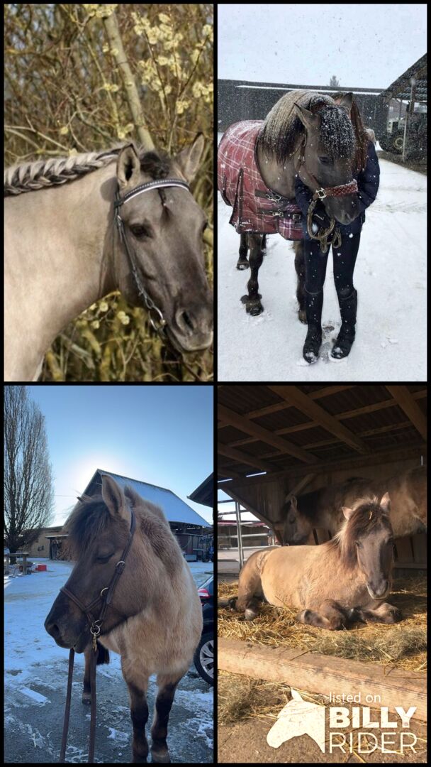 Profile: -Dülmen wild horse -gelding -born: 2005 -Height: 148cm -color: mouse grey/ dun, eel line -has always walked barefoot -will be sold with all accessories (saddle: western saddle, hide saddle, eventing saddle) -flaw: pollen allergy, loading difficulties (since an incident)