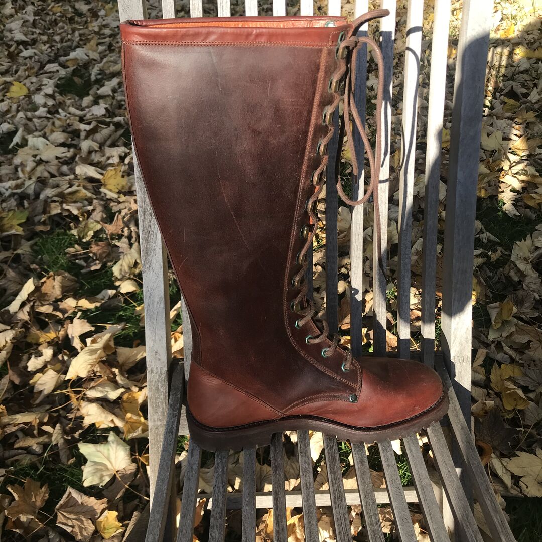 Riding boots with lacing - Winter model: leather exterior and leather lining. Handmade, welted sole. Can be adjusted to any calf by lacing. Tried on when bought, never worn: they were always too good for me... Small scratches from storage in the drawer. Because it has to be: Private sale without guarantee/return. If you have any questions: Just ask.