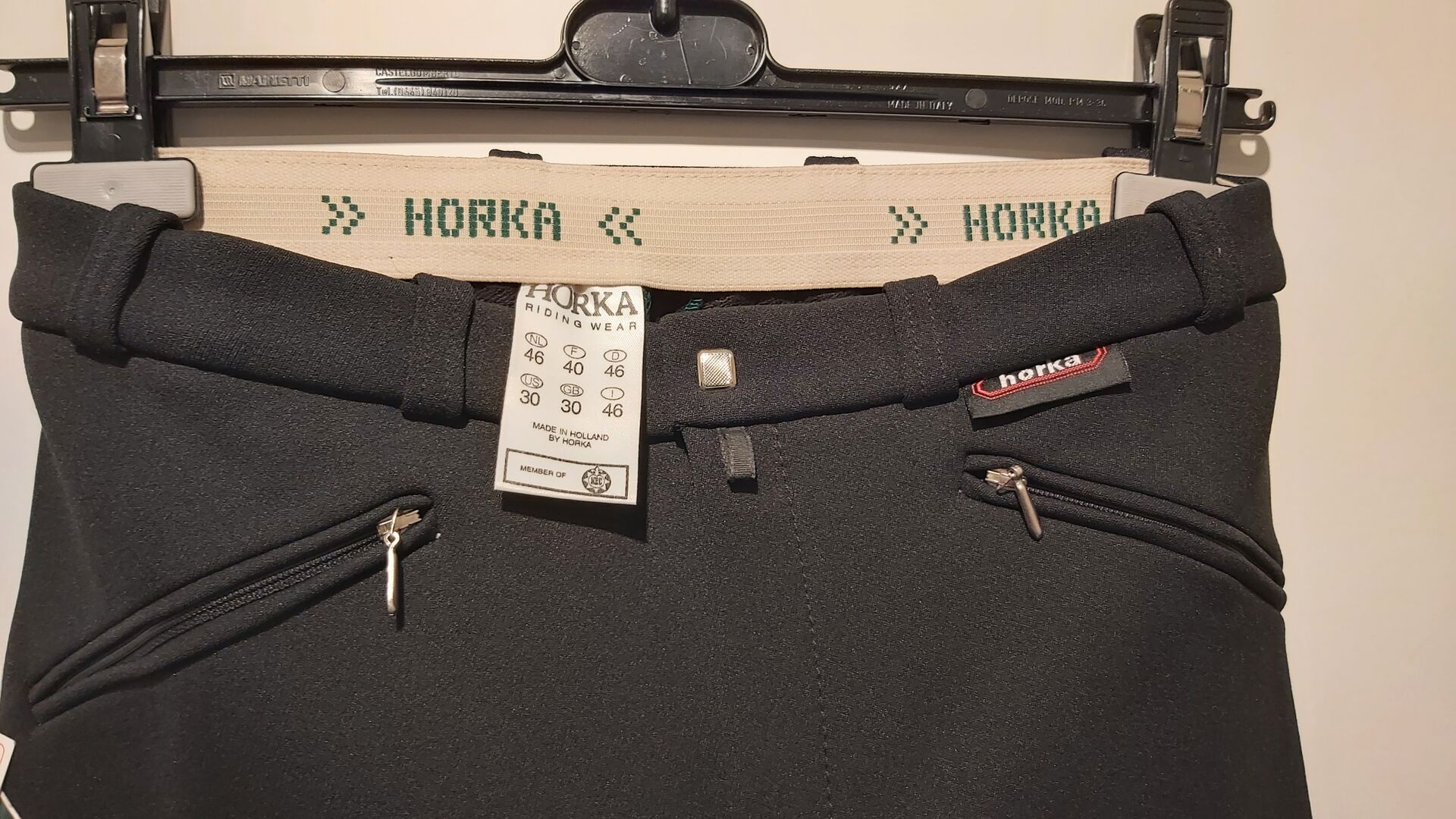 Riding breeches for men by Horka - NEW, men's riding breeches by Horka, Derby/Klima Stretch with genuine seat leather black, size 46, Older model, high quality product! Reduced from 205 € to 35 €; Price negotiable!