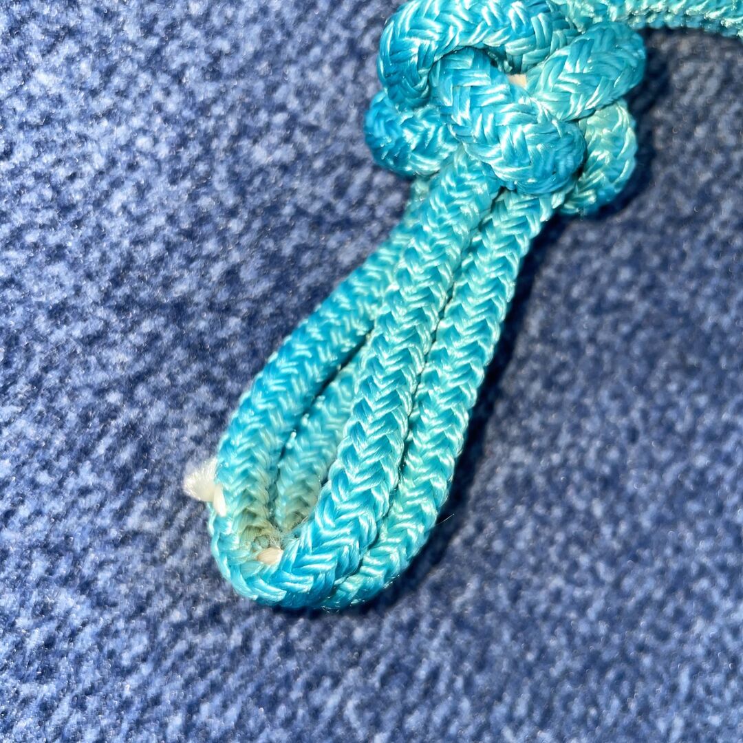 Türkisfarbenes Reithalfter mit Gebrauchsspuren