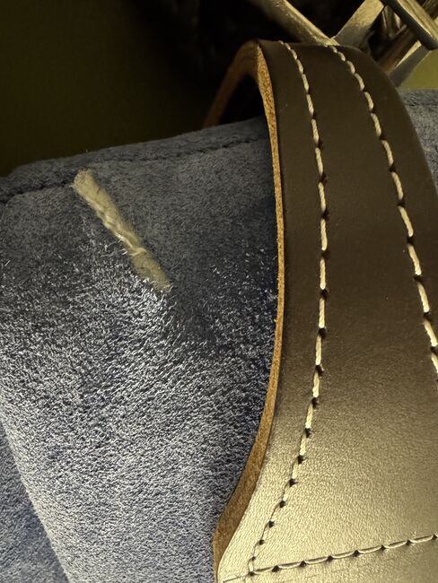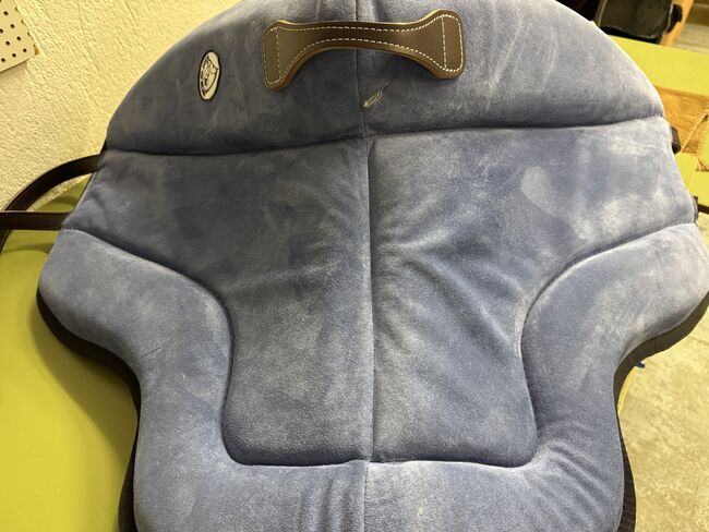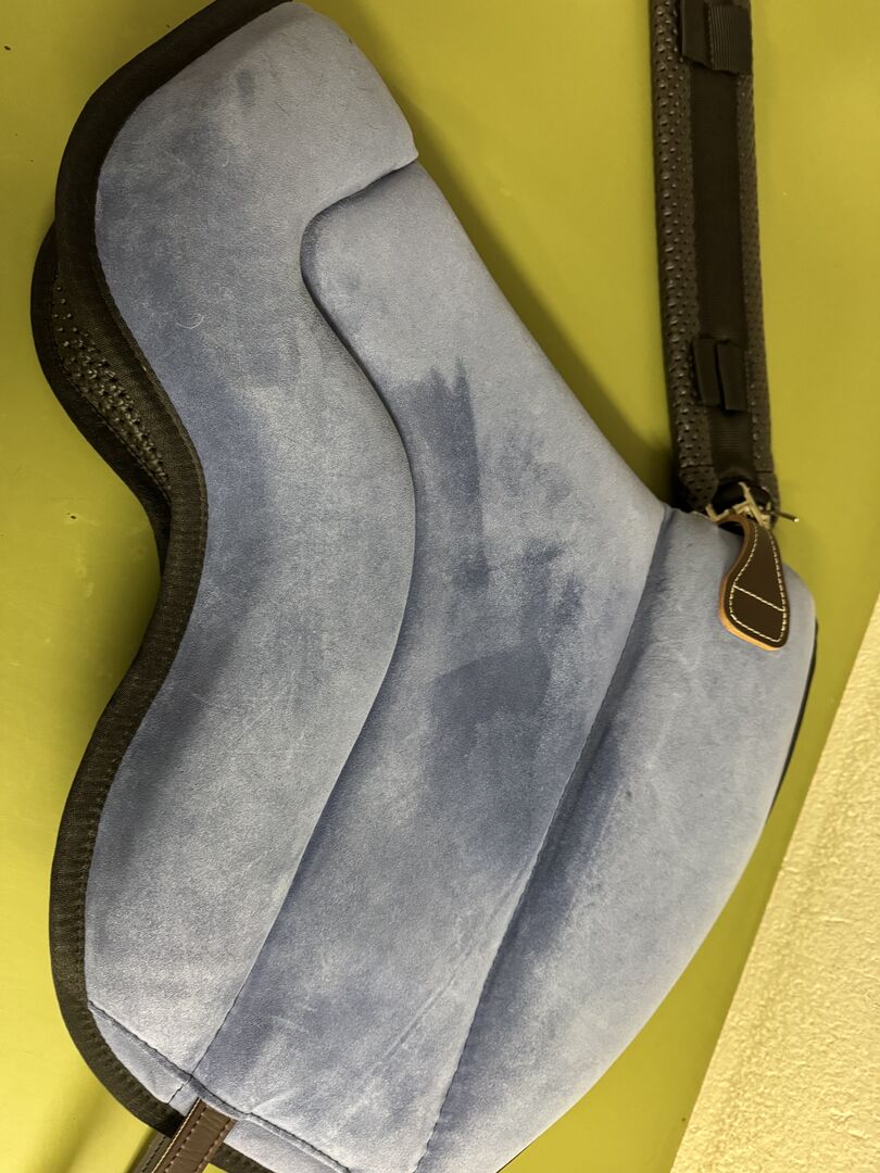Riding pad with girth - NEW- with small defect - The pad is new - unfortunately the pad was slightly damaged when the box was cut open (approx. 2cm - see photo - can easily be glued with duct tape, for example, or sewn with 3-4 stitches). The price is not negotiable - the pad costs 229€ in the store. No return or guarantee as private sale.