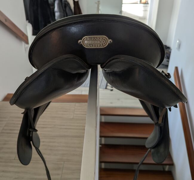 Rieser dressage and trail riding saddle, black, 18'' - We are selling a very comfortable, black 18'' Rieser saddle for dressage and trail riding with 3D wooden tree. The 3D tree is adjustable. The saddle was fitted to our Westphalian gelding (164cm, rather slim build). The Equiscan data of our horse is available and can be requested.