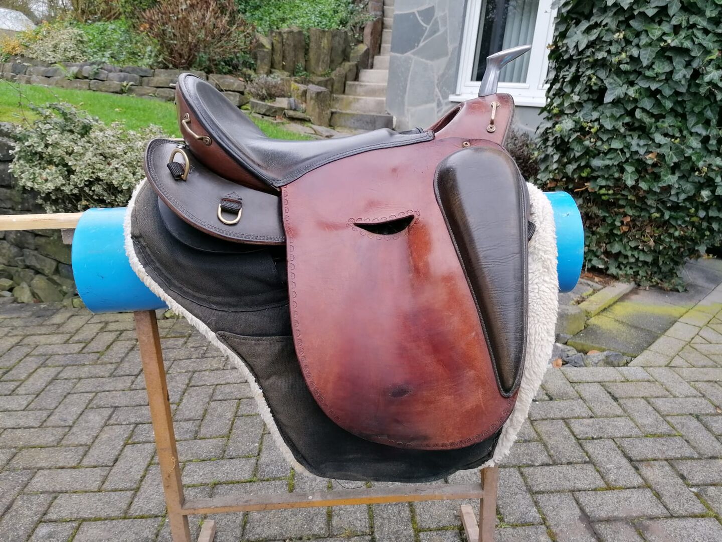 ROC Classic Dressage - - ROC Classic Dressage - narrow seat - color: brown / black - with Podium Aluhorn - Cover set: Medi Cheval, split, incl. padding (without ballance poster) - ROC girth, should be renewed - saddle tree: plastic P16W - 2 * black panels - year of construction before 2000 - still additional ROC PU padding available - without stirrup leathers and stirrups price negotiable, gladly price suggestion by message