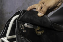 You sit very close to the horse, feel its movement and it is nice and soft for the buttocks. The knee rolls are large and the leg lies very quietly as a result.