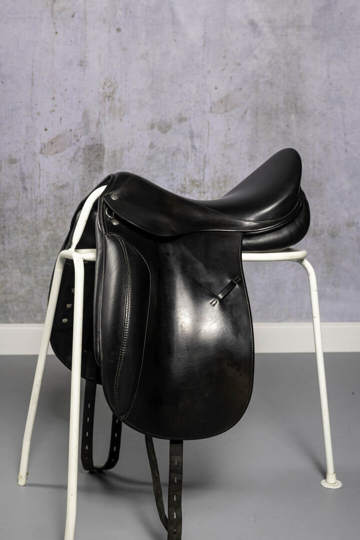 Röösli dressage saddle mono flap 17" - For sale well cared for Röösli dressage saddle with mono flap. Seat size 17" Leaf length normal Chamber width normal on delivery Chamber channel is super wide for the spine