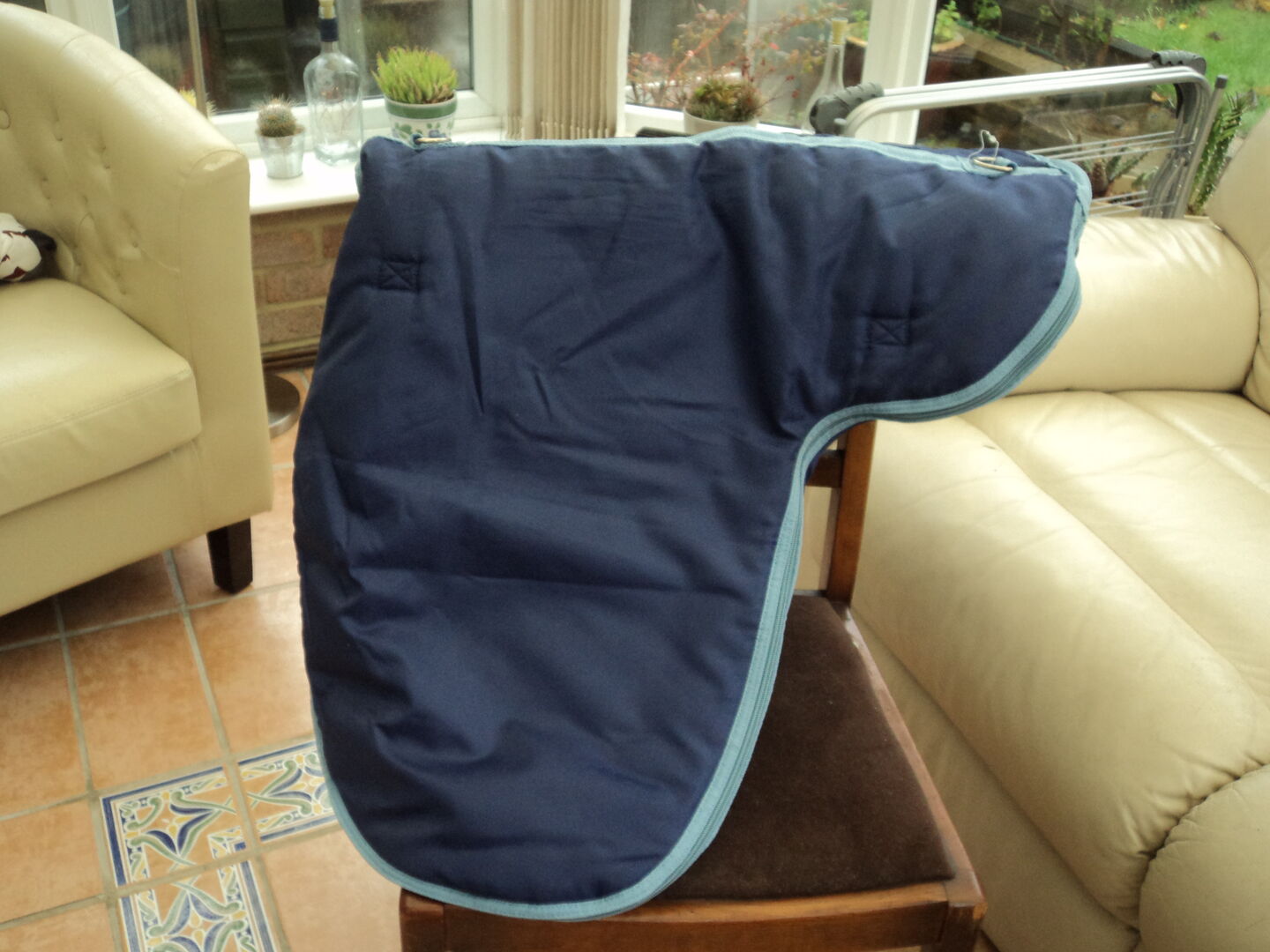 Blue saddle carry bag in good condition. used for keeping saddle clean on travel. fits 17in or below saddle.