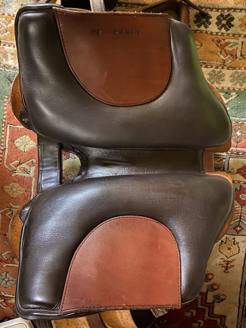 Saddle tree: Ultraflex tree with infinitely adjustable chamber width Seat size: S3 (I am 38/40) Saddle leather: Chestnut Seat leather: dark brown Fittings Brass and silver are included Price for new purchase now 3.399,- € Weight: approx. 10 kg Saddle length: approx. 57 cm
