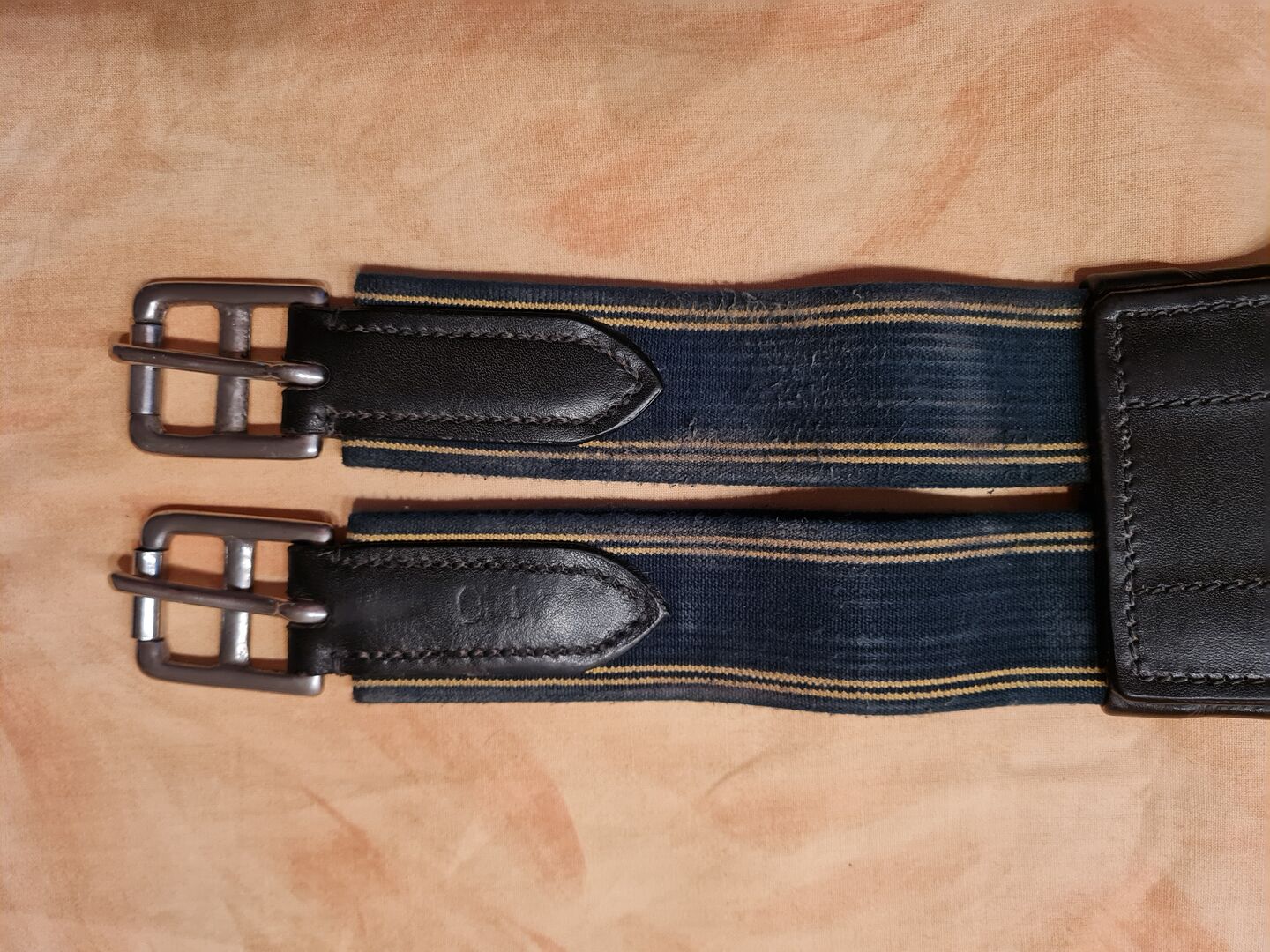 Saddle girth from Loesdau, used, good condition, in some places the leather does not look so nice anymore (see photos), but nothing is broken of course, black, leather, 140 cm, ergonomic shape, ring for breastplate etc., 1 side elastic inserts