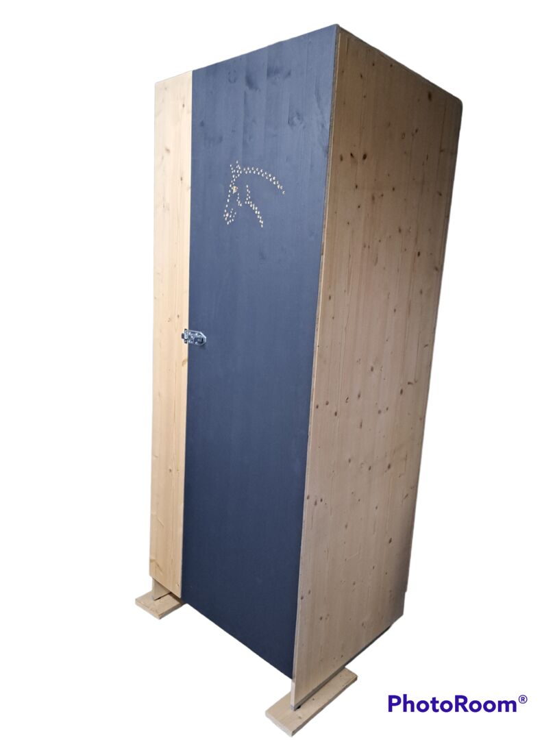 Saddle locker - Hello, because my girlfriend can not move the cabinet with me, I offer you the newly built cabinet. H: 2.00 m W: 0.80 m D: 0.70 m. Solid three-ply wood. Extendable bridle holder. Since the material price was 480 EUR, I ask for fair offers. Thank you. Location: 88... Would be but also Mitnahme to 89... Possible