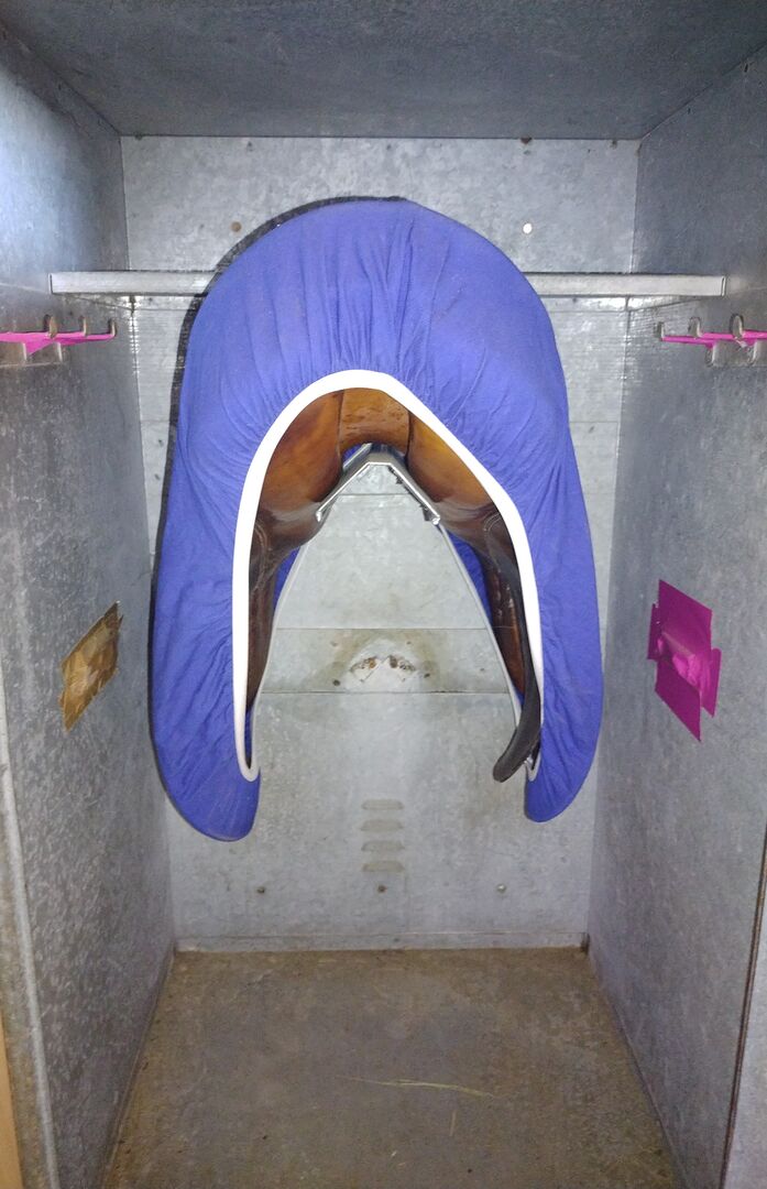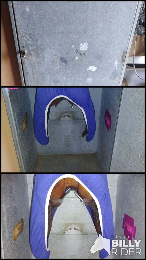Saddle locker - Used saddle locker, approx. H106.5*W59.5*D55cm, door slightly warped but works, new lock from Krämer fitted. Collection only in 79650 Schopfheim-Gersbach