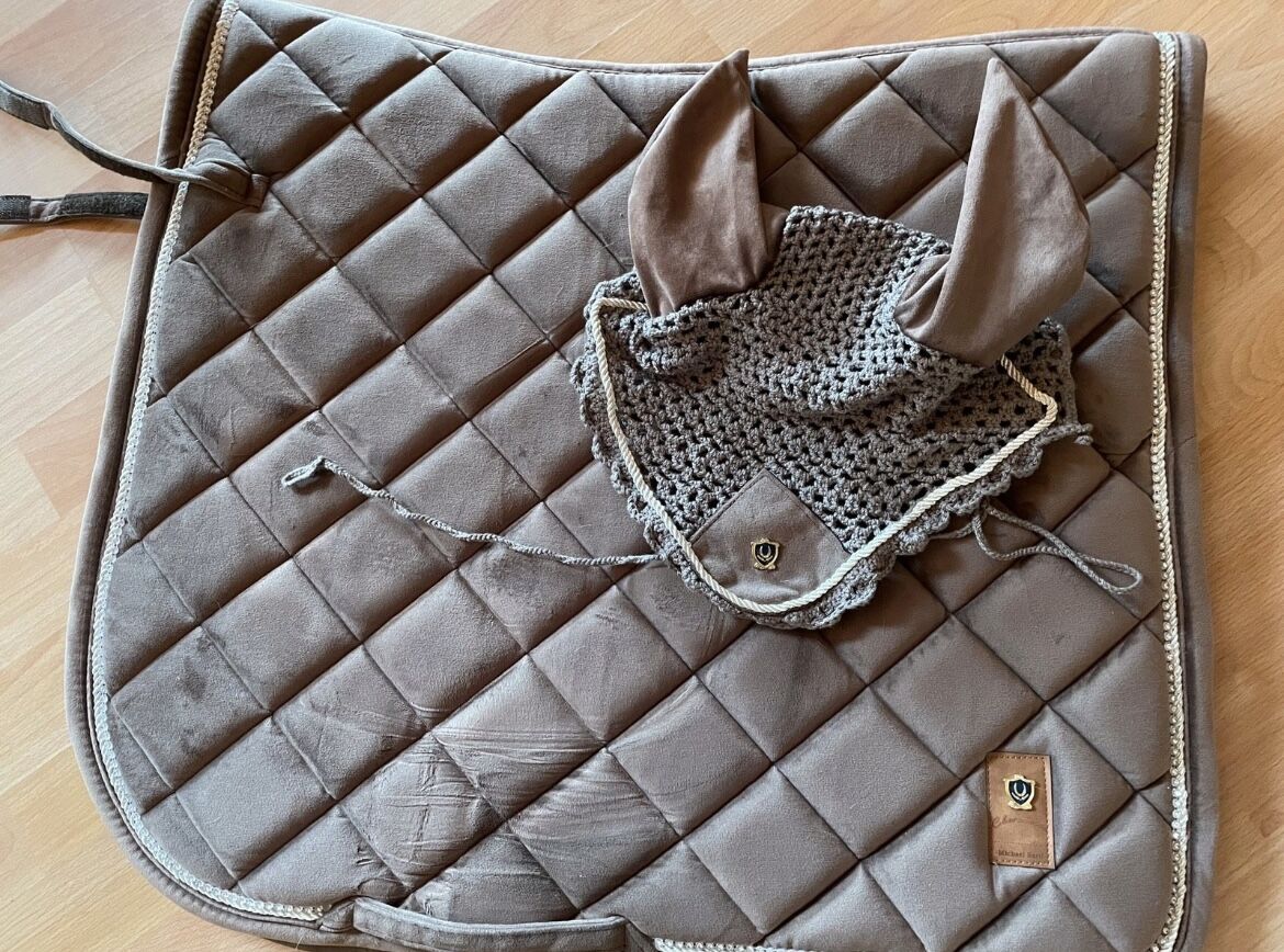 Saddle Pad DL/WB Fly Cap WB Taupe Velvet - Only on both sides are typical signs of use from the saddle (outside)