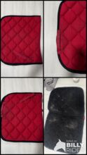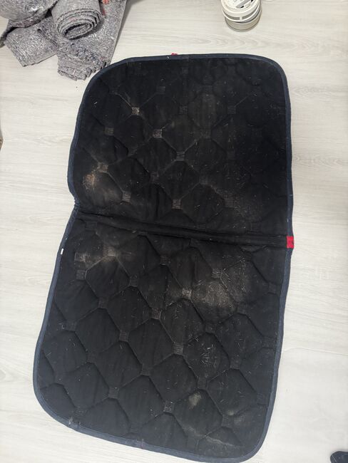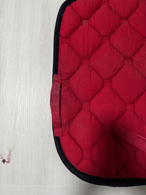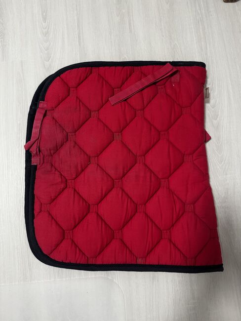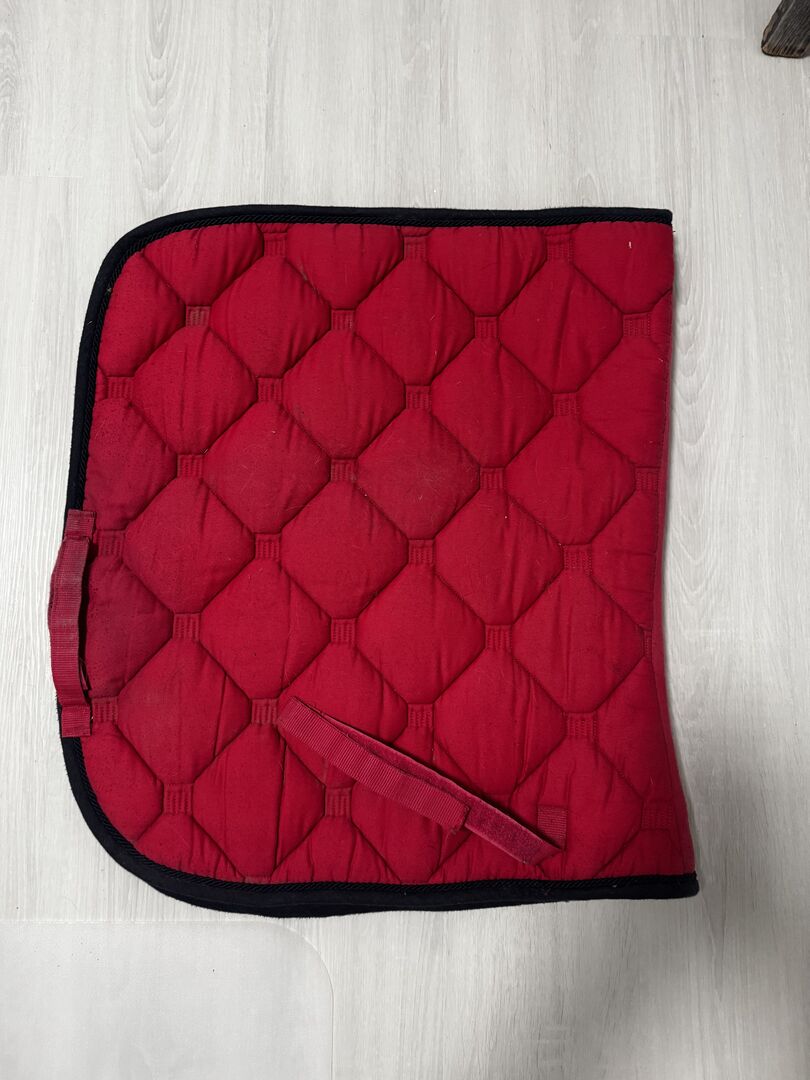 Saddle Pad Dressage - Dressage saddle pad in a red and dark blue border. A little faded at the girth area, but not noticeable with saddle, in good condition. Private sale therefore no guarantee or return. Shipping possible for a fee.