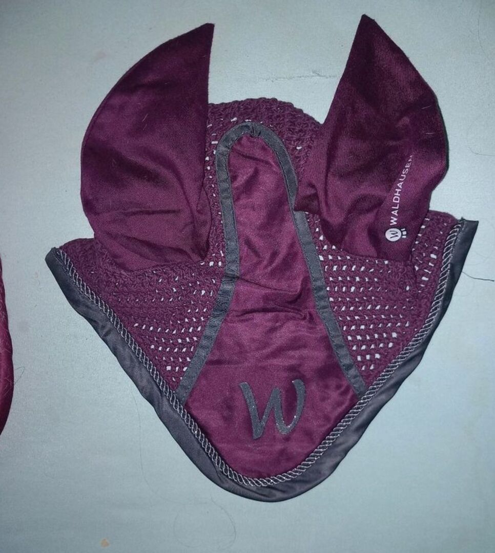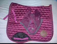Saddle pad&matching fly ears berry/fuchsia/light bordeaux - Waldhausen dressage saddle pad in the color cranberry with matching fly ears in WB/Full. The color of the fly ears matches the darker cord of the saddle pad. I bought the set together here on classifieds for 40€ - but have only used it 1-2 times myself. Pick up in RE-Nord or shipping against payment possible.
