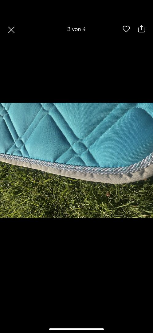 I am selling a saddle pad in very good condition. The saddle pad is in a bright blue color. Size is Vs.