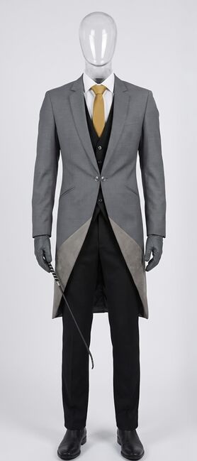 Includes: Tailored Show Jacket, matching Show Waistcoat, and formal Show Pants. Features: Pants are specifically constructed with professional-grade padding to ensure the correct traditional Saddle Seat posture and comfort in the saddle. 2. Elegant Grey Show Jacket & Waistcoat