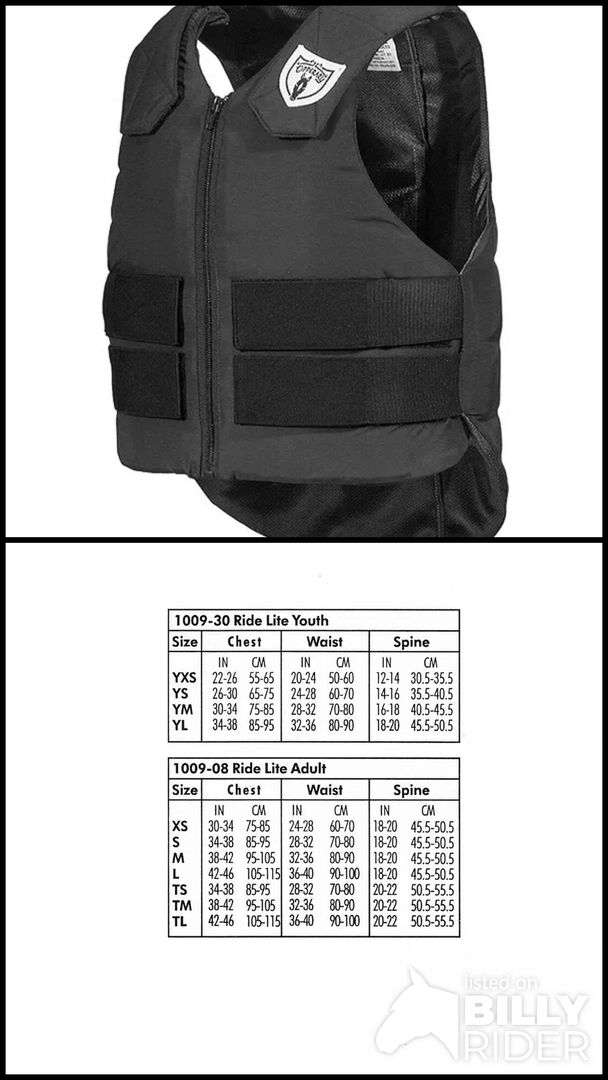 safety vest - I am selling my Tipperary brand safety vest. The vest is size YS and is suitable for small adults or teenagers/children. I am only selling the vest because I have outgrown it (my back is no longer completely covered by the vest). The vest is comfortable to wear as it is somewhat flexible and not completely rigid.
