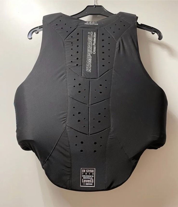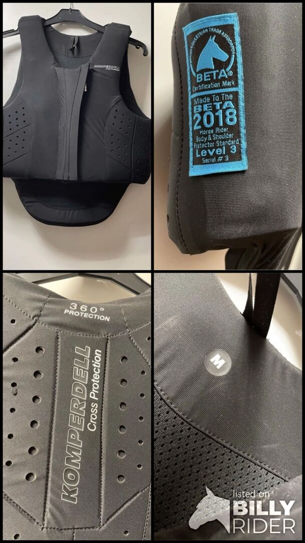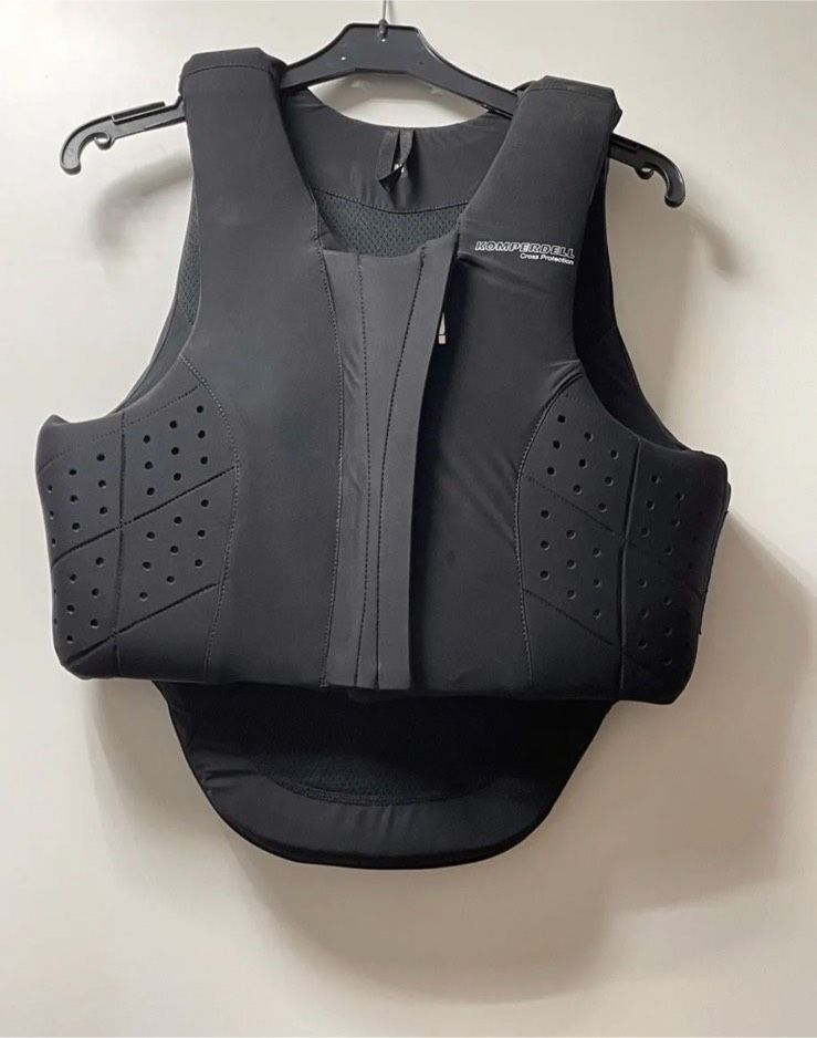 Safety vest EQUESTRIAN, safety riding vest Komperdell Regular Fit - For sale here a 2 times worn safety riding vest. Regular fit Incl. transport cover Color black size M New price: 290€