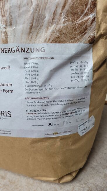 Sapodoris Dermino Protein supplementary feed amino acids - Opened 2.5 kg bag of Dermino protein supplementary feed from Sapodoris. A few daily portions have been removed, but the bag still weighs approx. 2.6 kg in total, so it should still be as good as full. Stored in a cool, dark place. Minimum shelf life until March 2026.