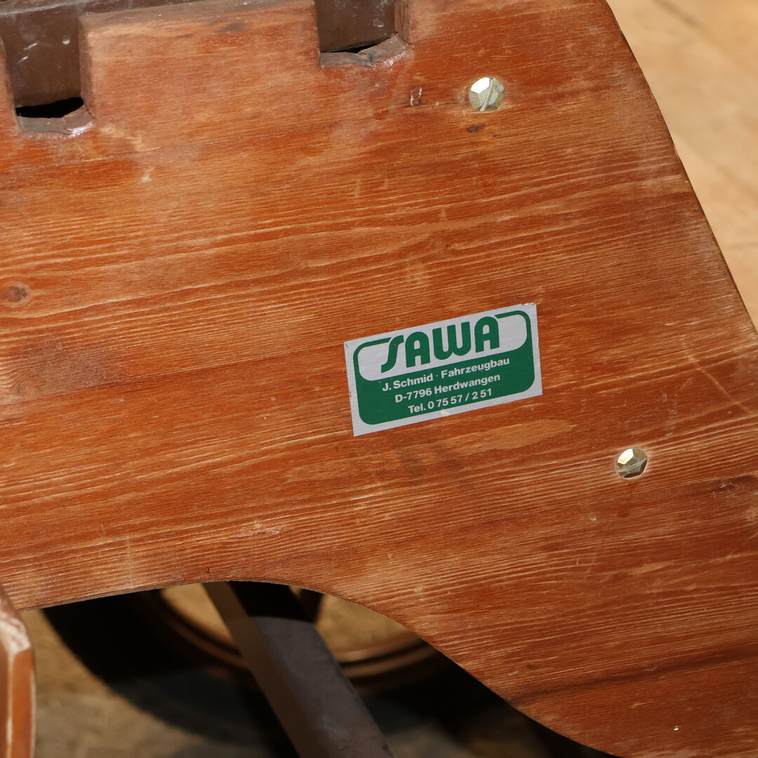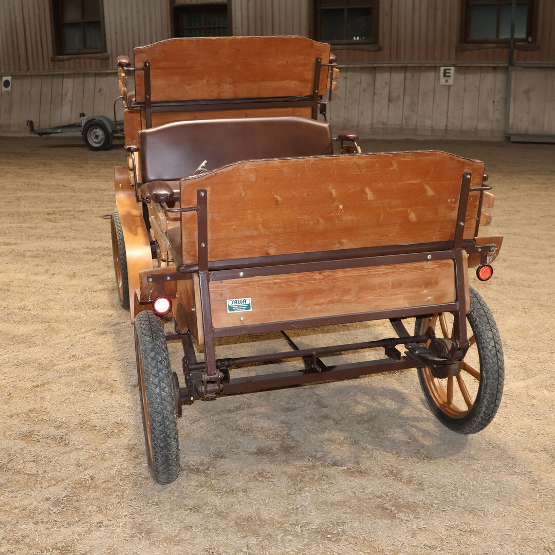 Brand: Sawa (Schmid Herdwangen) Carriage type: Leisure carriage Condition: Good condition (wood in good condition, upholstery in good condition) Ready to drive: Yes, carriage is fully roadworthy and drives without any problems Color: Natural wood