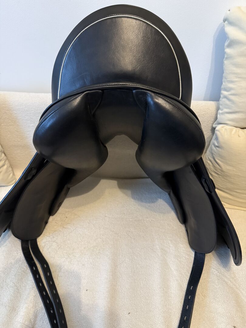 Schleese Bubi 17er seat 39cm support - I am selling my Schleese Bubi. Fully customizable on site, cold adjustable gullet plate. It was re-upholstered in Dec.25. For straight to slightly curved backs. Thanks to the Bubi (custom-made for short backs - 39 cm support), my horse has been able to make mega progress. Due to the low support and the great shoulder freedom (also suitable for ponies and small horses). Has been checked, fitted & re-padded by Schleese saddle fitters - 2 sheets enclosed - measurements of horse & rider Unfortunately, even a Schleese saddle can no longer keep up with physical development! See pictures. Please ask