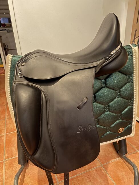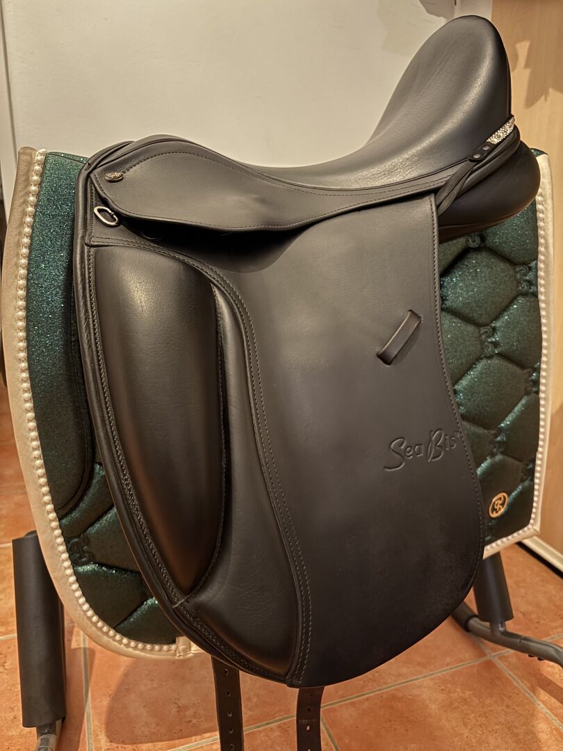 SeaBis Vigo Pro 18" dressage saddle - Hello, I am selling my Seabis Vigo Pro 18" NP 2.390€, which I bought new at the end of May 2024 The saddle is therefore approx. 1.5 years old and has been treated with care and used regularly. Only selling because my requirements and those of my horse have changed and we have therefore bought a new saddle. Both dressage sessions and longer rides were no problem for me in this saddle.