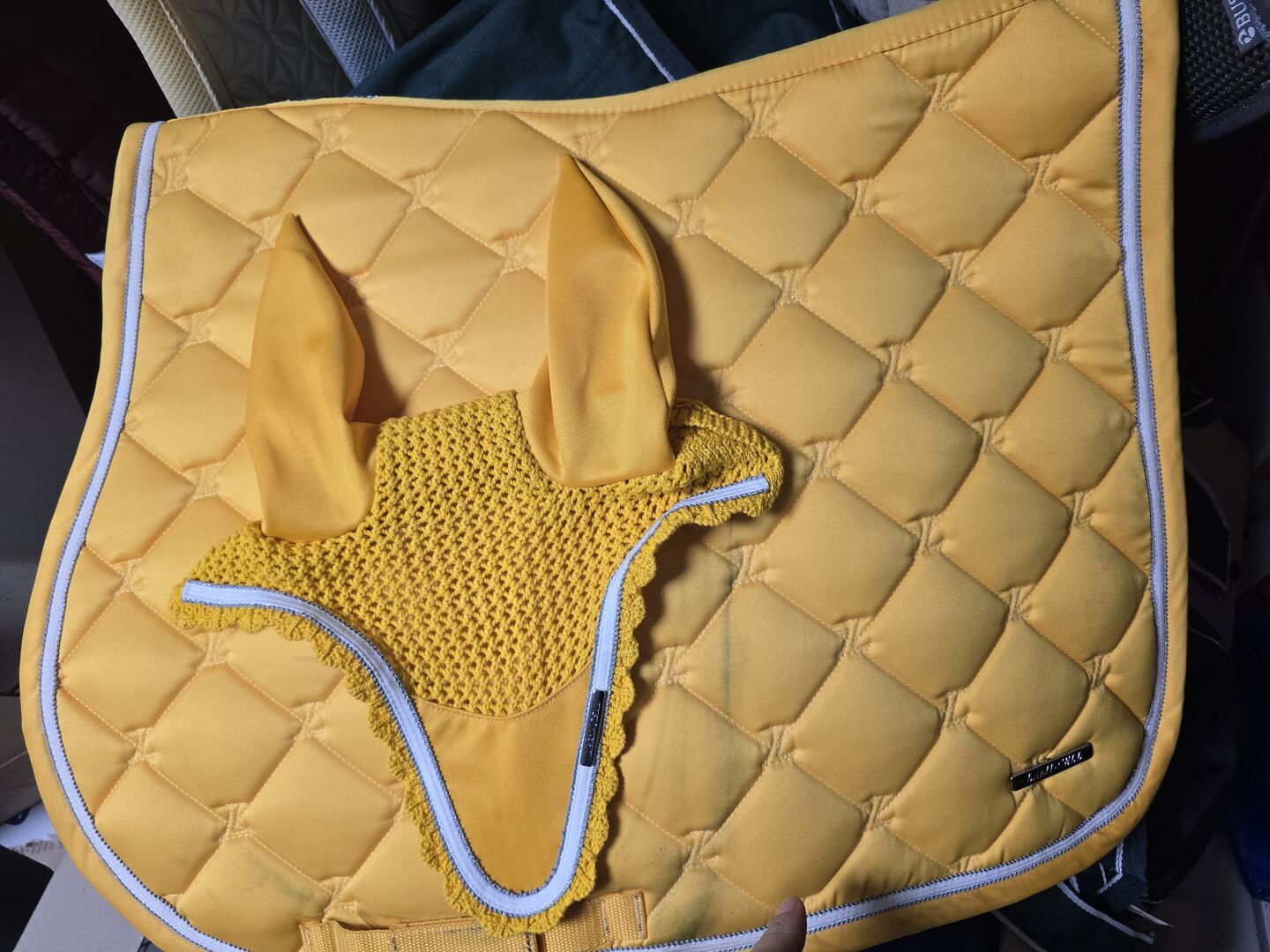 Set Lamicell Yellow Wb Vs fly hood saddle pad - Used 1-2 times Wb Vs/ Jumping yellow shipping possible 6,99€ Paypal possible friends or payment of fees Bank transfer and collection also possible
