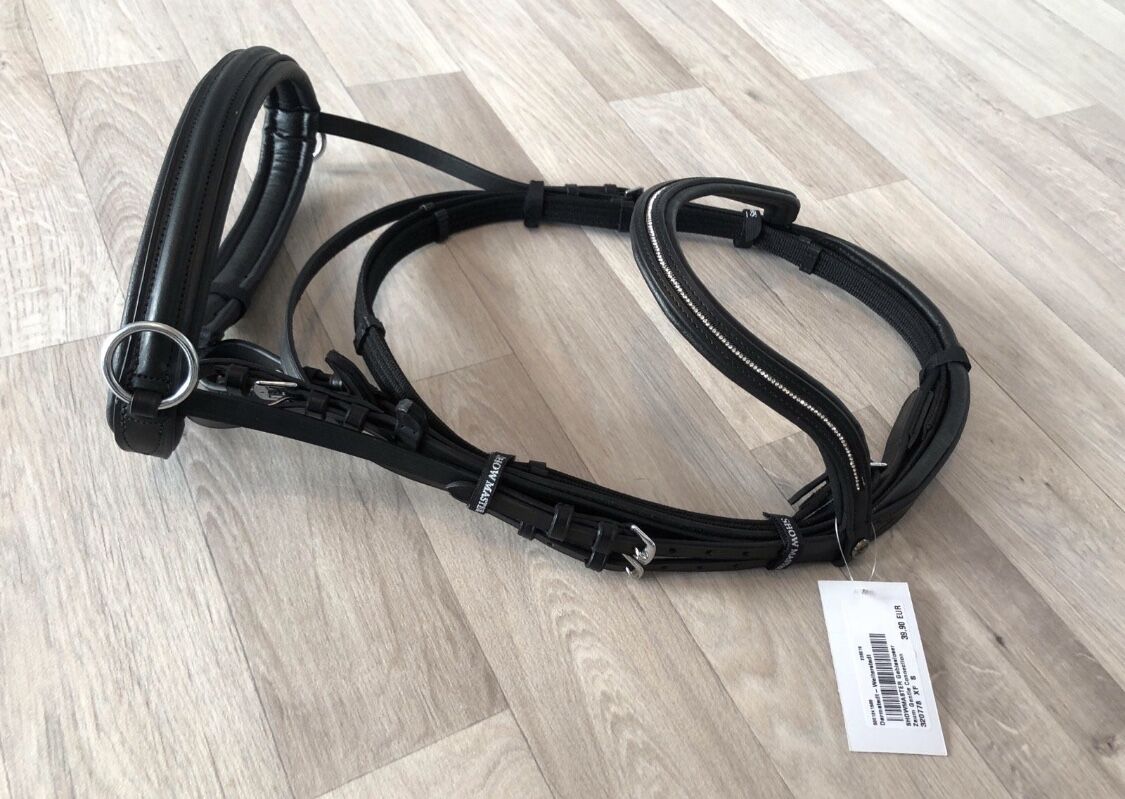 Material Info & Features: Size XF Color black Made of genuine leather For bitless riding Gentle action Underpadded browband High wearing comfort With leather girth reins