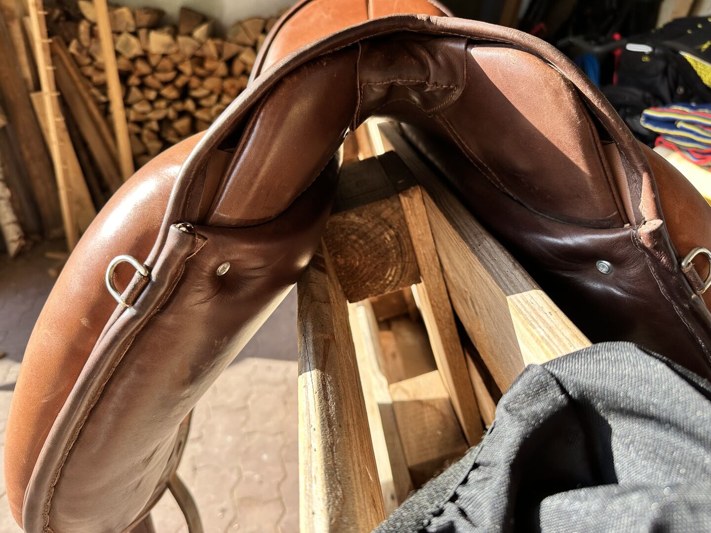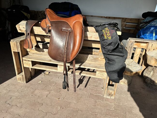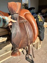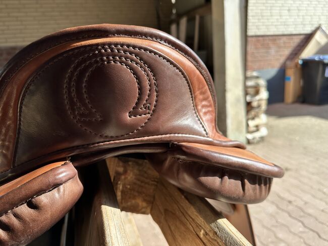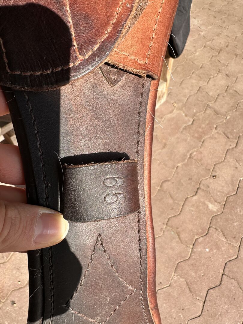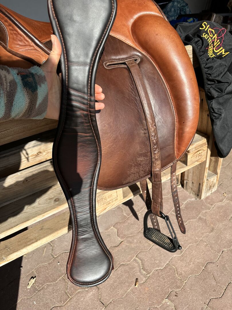 The saddle is in excellent condition and shows hardly any signs of use. The high-quality leather is supple and the workmanship is first-class. Perfect for working equitation.
