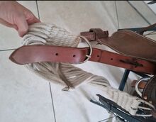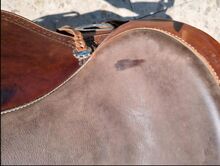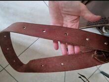 It has been used only 2 times and has been in the house as a souvenir ever since. It is too good for that and is now looking for a new role. Replaceable and adjustable Velcro straps, see pictures, no pressure points, spine-free. On the last picture you can see that there is a stain in the saddle area, this happened to me during saddle care.....