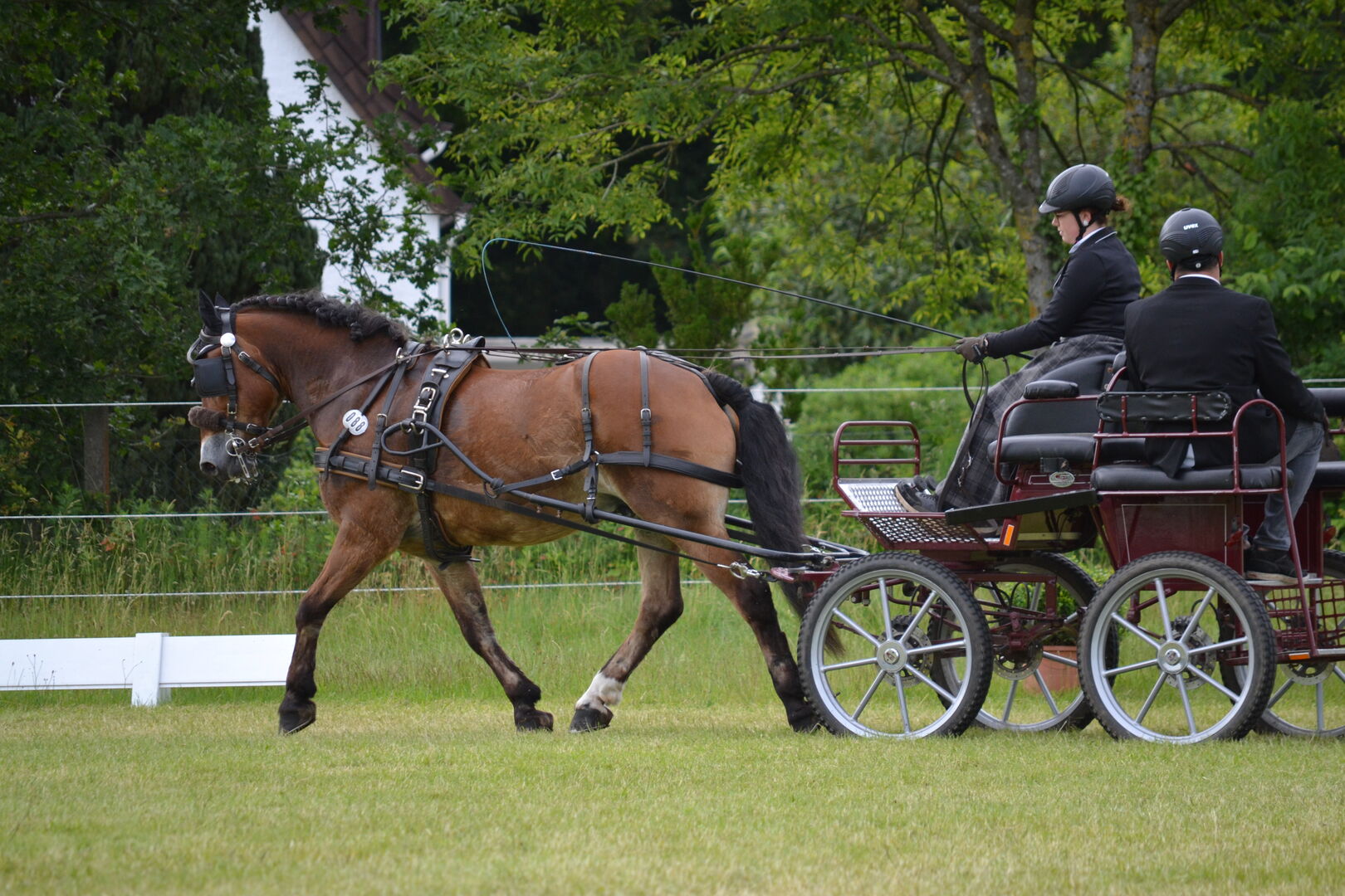 She can be driven one and two spännig. Included is the scissors to drive single harness