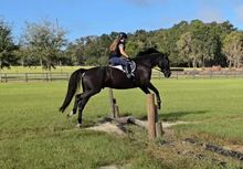 Fancy young Warmblood investment horse! Dressage, H/J, or eventing. Lord Ferragamo x Ferro x Formateur Earl Grey, aka Early, is a 2019 black bay Oldenburg gelding standing 16.2h sticked barefoot. He won 1st place at 2020 Young Horse qualifiers, was Reserve Champion at USDFBC 2021 Regional Finals with a 78.7% and a 79% from both judges and showed Materiale dressage in 2023 scoring 76.2%. Early schools training level dressage, trail rides, and has started over fences. He loves xc schooling and has jumped ditches, banks, coops, logs, and more! His sweet puppy dog personality, stunning looks, and eye-catching fancy Warmblood movement make him a barn favorite. He has been brought along slowly and correctly with an emphasis on the basics and longterm soundness. Early is a barefoot easy keeper and is up-to-date on shots, Coggins, deworming, sheath cleaning, hoof trimming, and floating. Current pre-purchase exam and CLEAN full set of X-rays on file (front feet, hocks, stifles, and back)