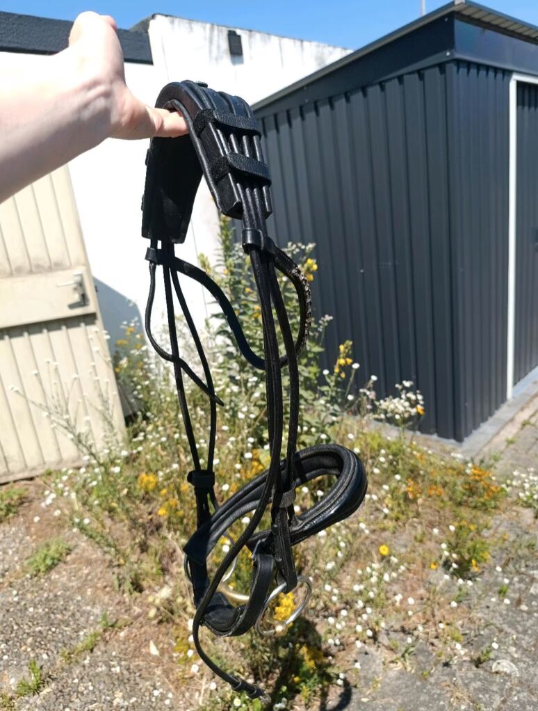 Snaffle round stitched patent black WB - I am selling this round-sewn snaffle from Nike Horseproducts in size WB, the noseband is made of patent with black leather underlay, without reins and without bit