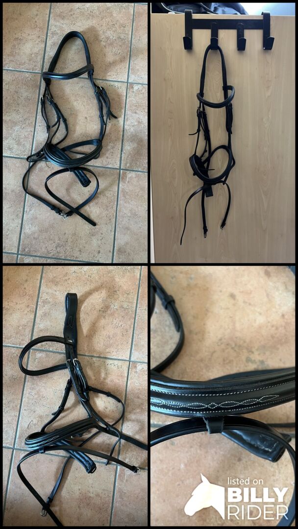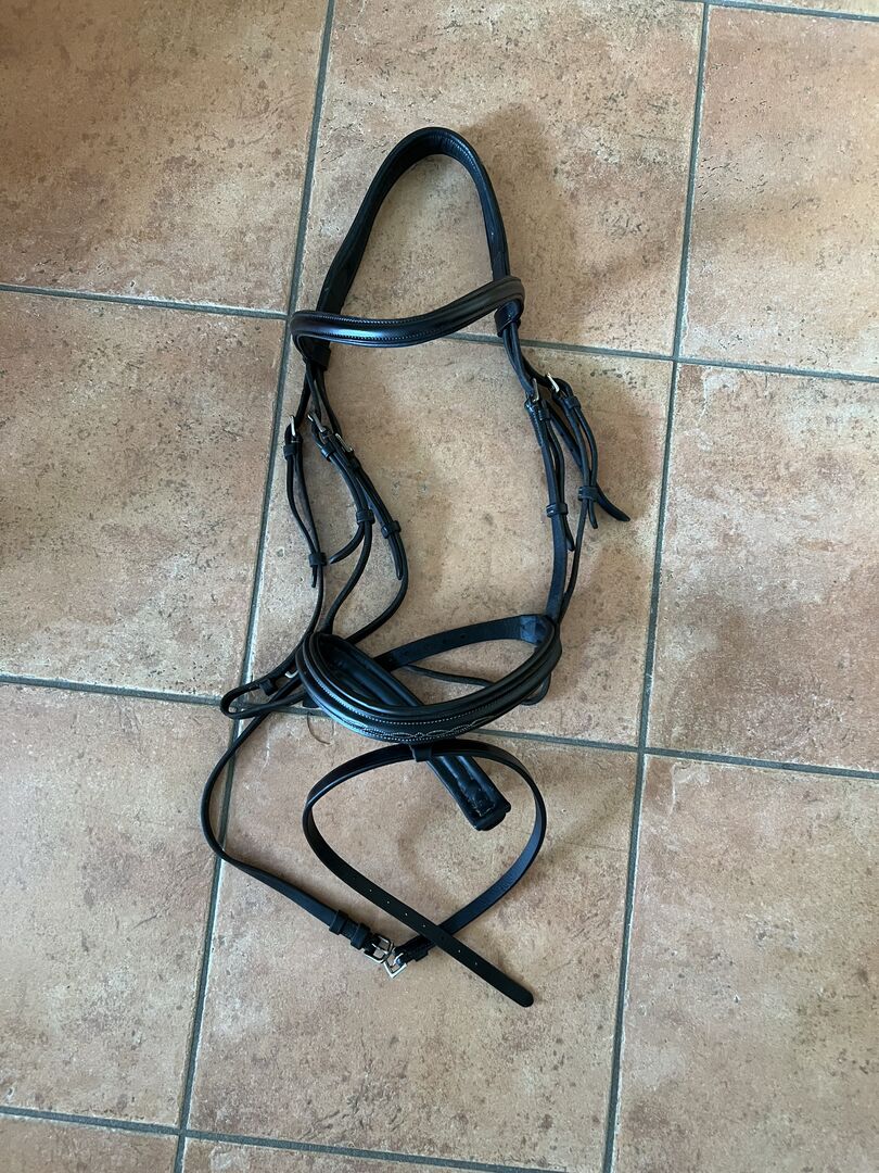 Snaffle Schockemöhle - For sale black snaffle with white decorative stitching by Schockemöhle in size large warmblood.