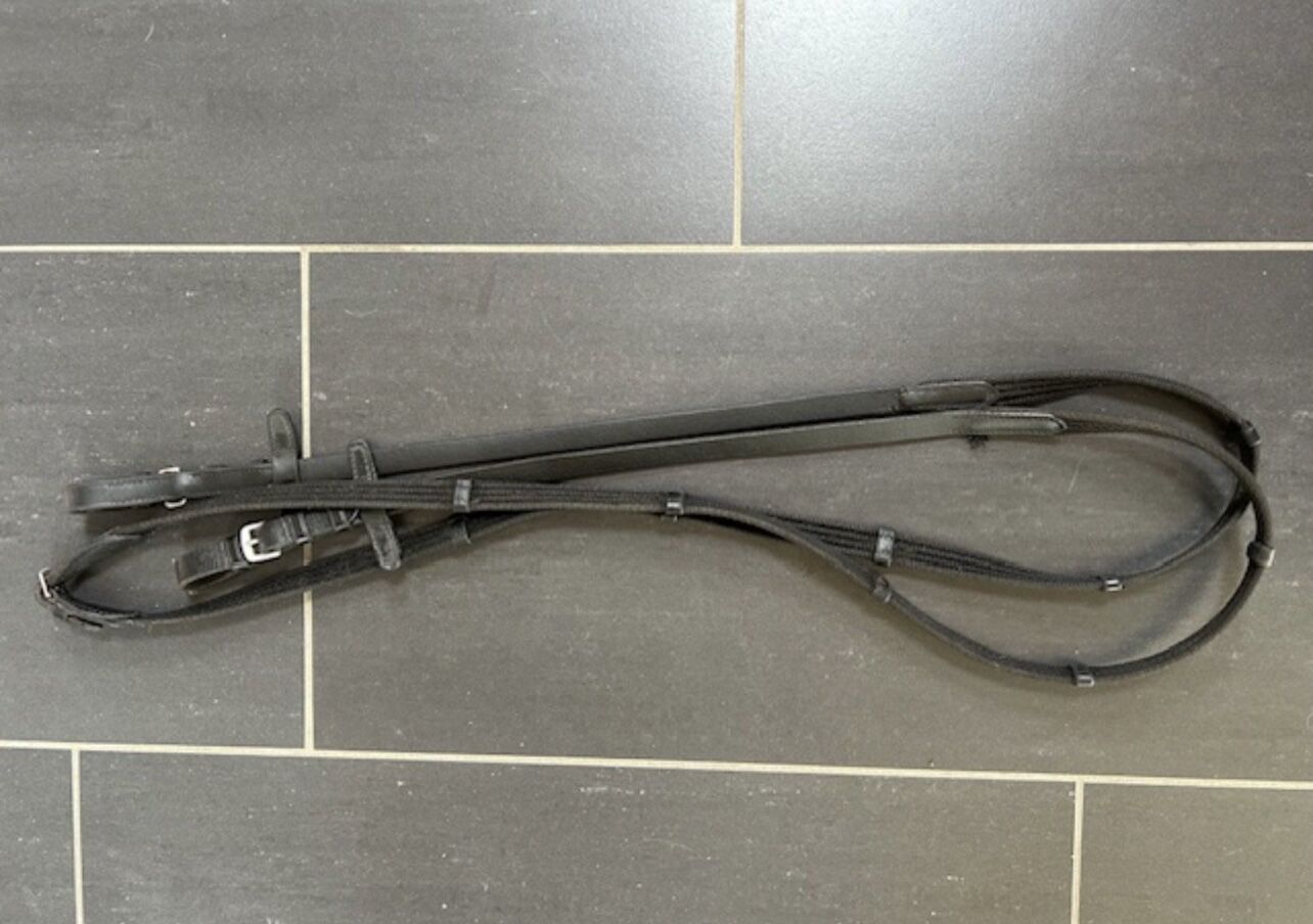 Snaffle (size Cob/Fullblood, black) - I am selling the pictured black snaffle (Waldhausen brand) in size Cob/Purebred. The bridle has an anatomical headpiece and a detachable flash strap. The reins are included. Very good condition. New price: 100 Euro Private sale: no exchange, no return