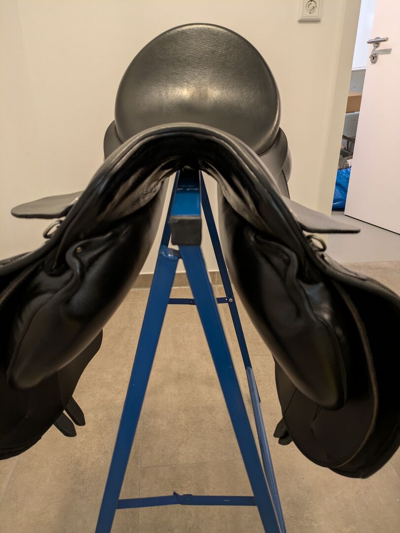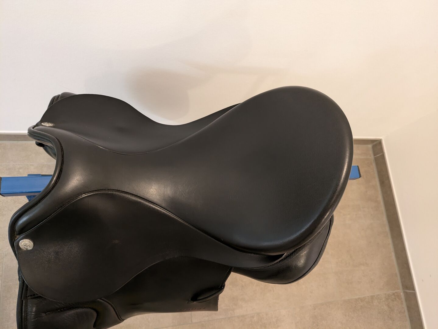 - Year of manufacture 2019, bought at the end of 2019 (I am the 2nd owner) - Normal signs of use, good/maintained condition - 17,5 - Chamber width 31.5: this was adjusted once for my horse - Very wide stirrup channel 8-9 cm - Performance panels - Extra soft seat - Completely black - I had it converted to a long girth. This can be changed back to short girth by any saddler. - I have 2 pairs of Velcro pads. You can choose a pair. - Saddle pads included.