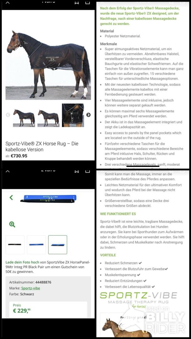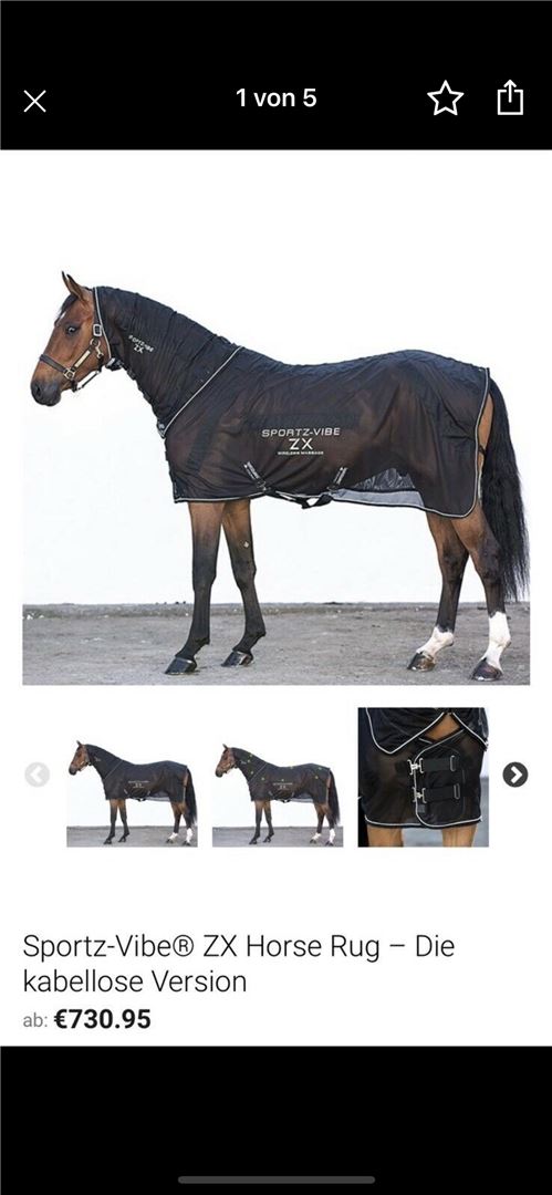 Sportz-Vibe ZX Wireless horse massage blanket black with 6 instead of 4 massage panels. - Ceiling size: Medium 6'0-6'6 (130-145cm)