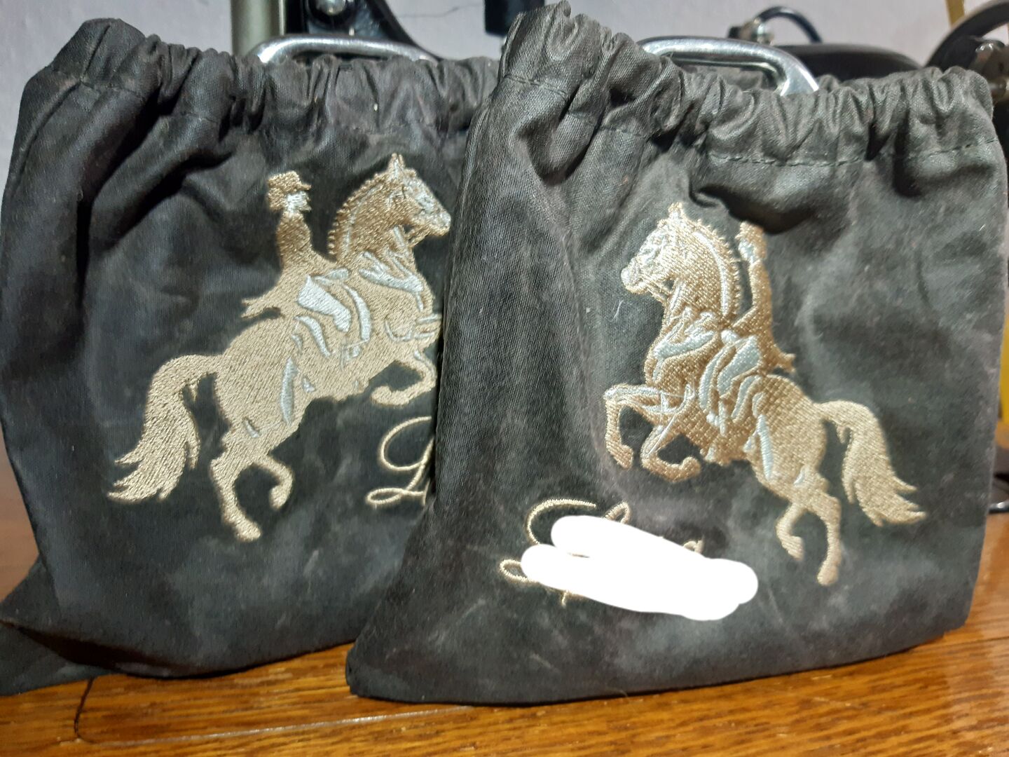 Stirrup Guards Embroidered Oilskin - Socks for your stirrups for protection and because you just look great! Hold the stirrup socks find through a retracted elastic band. Sewn from sturdy and high quality oilskin brand Merchant and Mills from England and personally embroidered. Oilskin: Genuine- the best quality traditional oilskin, made in the UK, age resistant and beautiful to wear. The Oilskin has a firm handle. This has the advantage that the fabric changes beautifully with handling and lives with wear- vintage look. The fabric will soften over time. Available colors: Dark brown, dark olive, black, moss green, dark blue, wine red. For special requests, feel free to write me.
