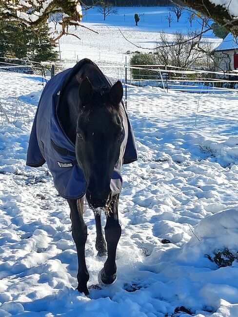 Grace needs: Open stable or loose stable with plenty of exercise. Varied, regular activity A person with time, patience and horse sense. A long-term home with a heart. Unfortunately, I can no longer do her justice (more on this in person). Despite a great riding partner, it's not enough. I have been struggling with this decision for over a year, but I want to act for her while she is at the best age so that she can find her heart's place. I will only give her away to absolutely suitable hands. Place before price. If you are interested and can offer Grace a loving and competent home, I would be delighted to hear from you. Further information on the Württemberger Thoroughbred-Mix mare is available on request.