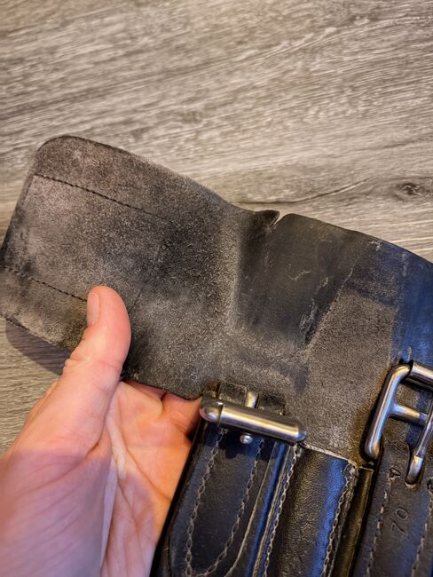 Stübben dressage girth short girth leather 70cm - I am selling a used Stübben short girth which is in good condition. The girth is a bit older and has been used a lot, so it has a small tear on the leather of the buckle guard, but with good care it will not tear any further. I took over the girth 3 years ago and nothing has torn since then, despite regular use.