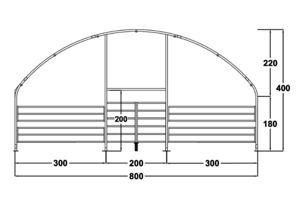 Die Konstruktion besteht aus feuerverzinkten Stahlrohren und ist für den intensiven Einsatz im Außenbereich ausgelegt. Die starke PVC-Plane mit 750 g/m² ist wetterfest, langlebig und widerstandsfähig. Ein großer Vorteil dieses Modells ist der Innenraum ohne Innenstützen, dadurch kann die gesamte Fläche zu 100 % genutzt werden. Das Weidezelt ist mobil, praktisch und lässt sich bei Bedarf leicht an einen anderen Standort versetzen.