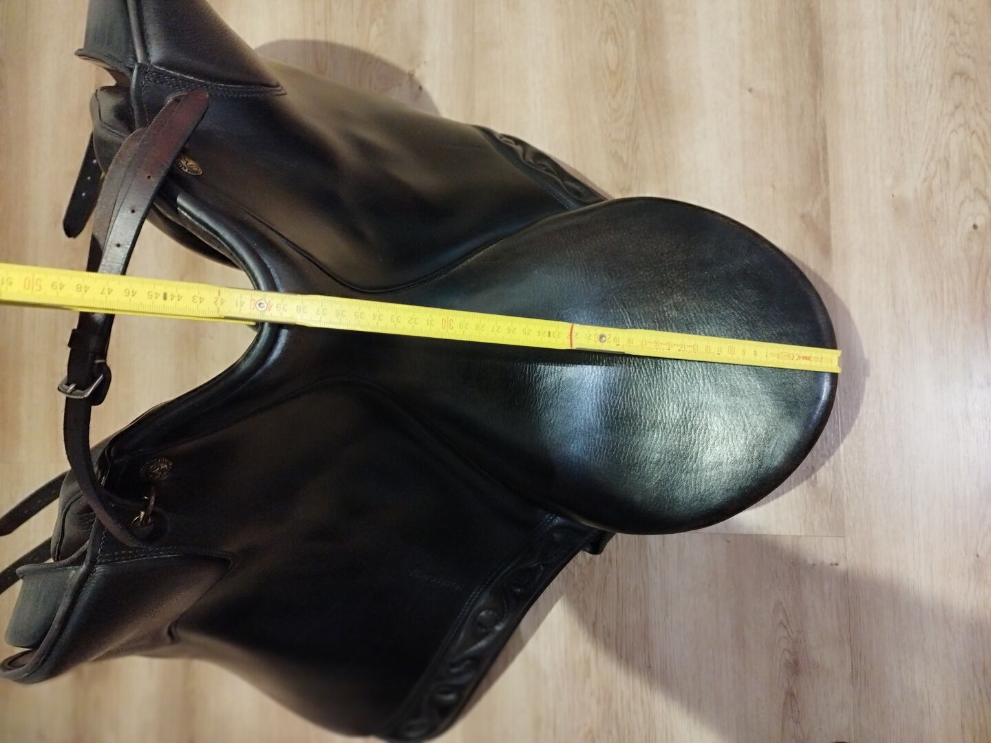 Details: Seat size: 17.5 inches Gullet plate: currently size 36, cold adjustable Tree: flexible tree Padding: completely re-upholstered 2 years ago Condition: used, signs of wear see photos Care: freshly cleaned and greased