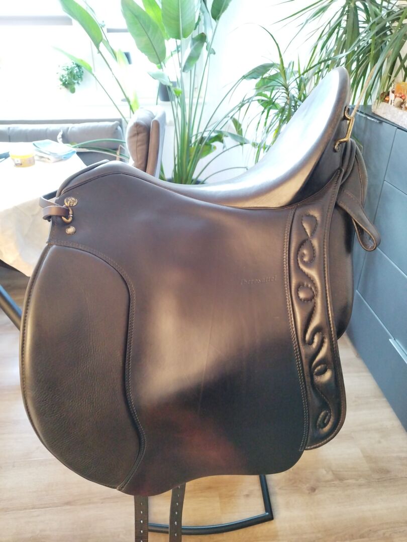I am offering my used Sommer saddle, model Ibero Andaluz, for sale. The saddle was mounted on a wide Friesian and was used regularly, about every 3-4 weeks. As my Friesian has now outgrown it, we unfortunately have to part with this saddle. The deep seat provides a lot of security, especially with swinging gaits and more demanding lessons. The saddle is suitable for dressage work as well as for relaxed rides and small jumps.