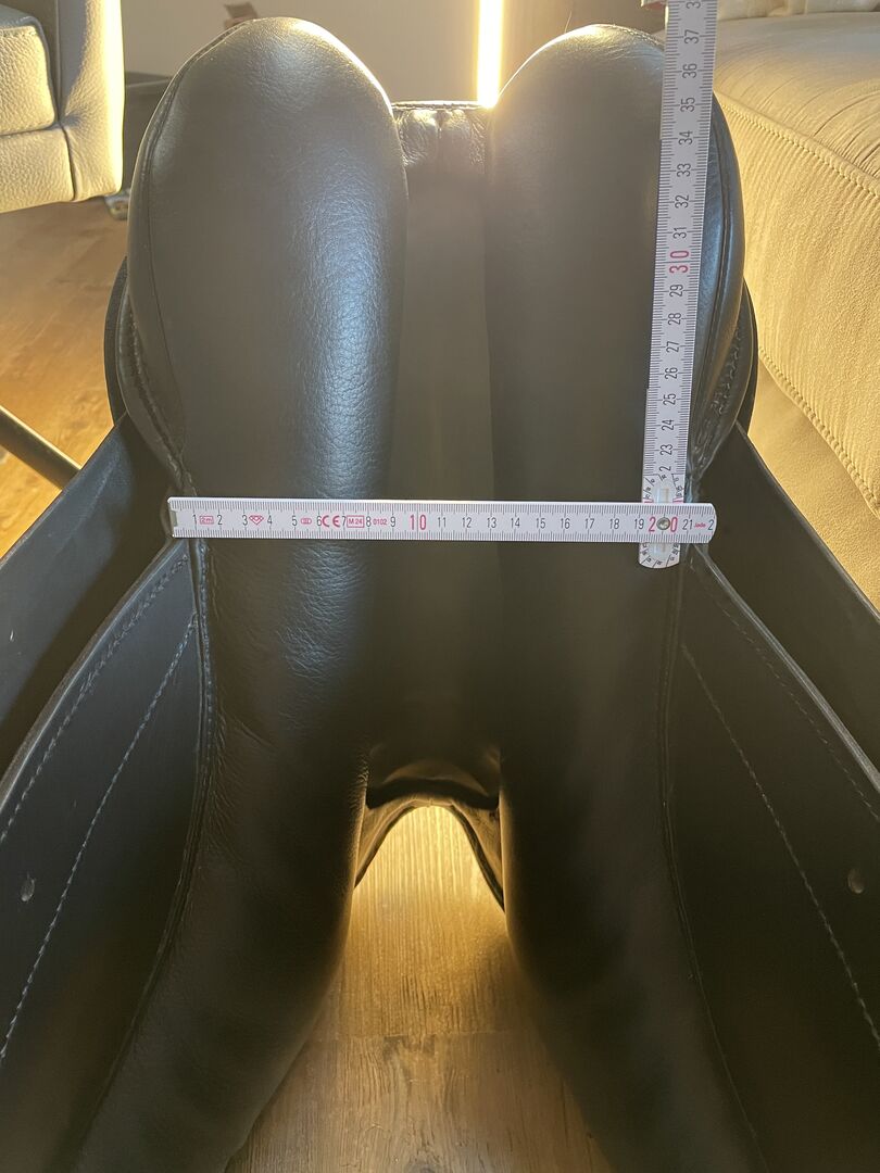 Summer VS saddle completely re-upholstered - My used VS saddle from Sommer is moving on. According to an inquiry at Sommer, it is a Royal Vs from 2001 in the color black. The seat size is 17.5", please refer to the photos for further measurements. It was completely re-upholstered this year by a saddle fitter. An invoice for this can be provided. The gullet plate can always be flexibly adjusted. Otherwise in a used and well-kept condition. A long girth can be purchased if required.