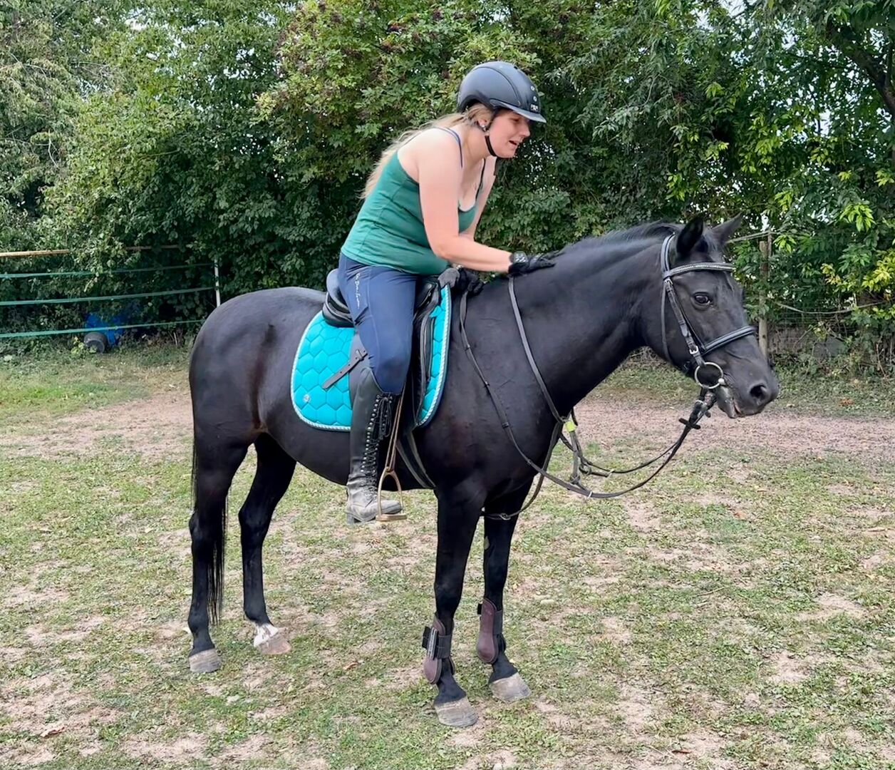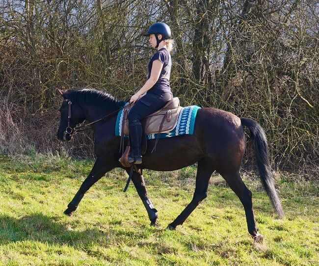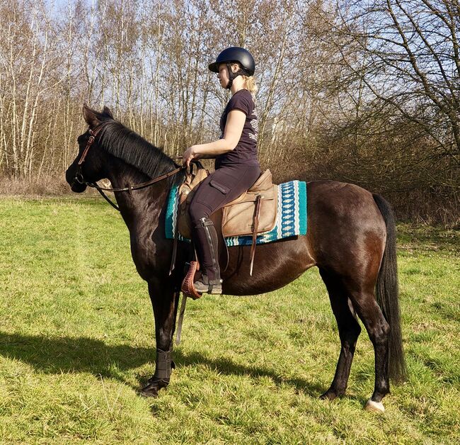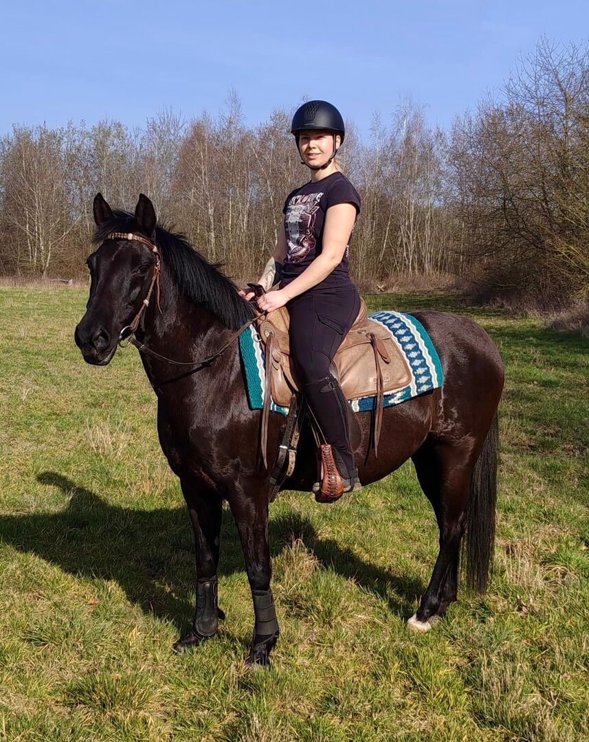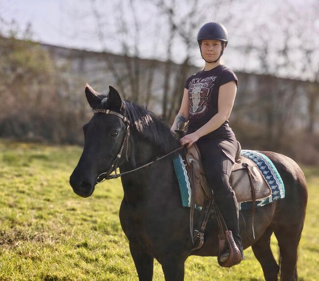 She is a very well-behaved and fine riding pony who is extremely pleasant to ride. She is willing to learn under saddle and is constantly developing. She tends to move quickly - ideal for anyone who likes a pony that likes to move a little faster, but always remains well-behaved and controllable. She is also reliable in the field, likes to look, but is not very skittish. She has been ridden Western and English for leisure. She really enjoys free jumping and I think she would also have a lot of fun with a rider. But we haven't tried it out yet.