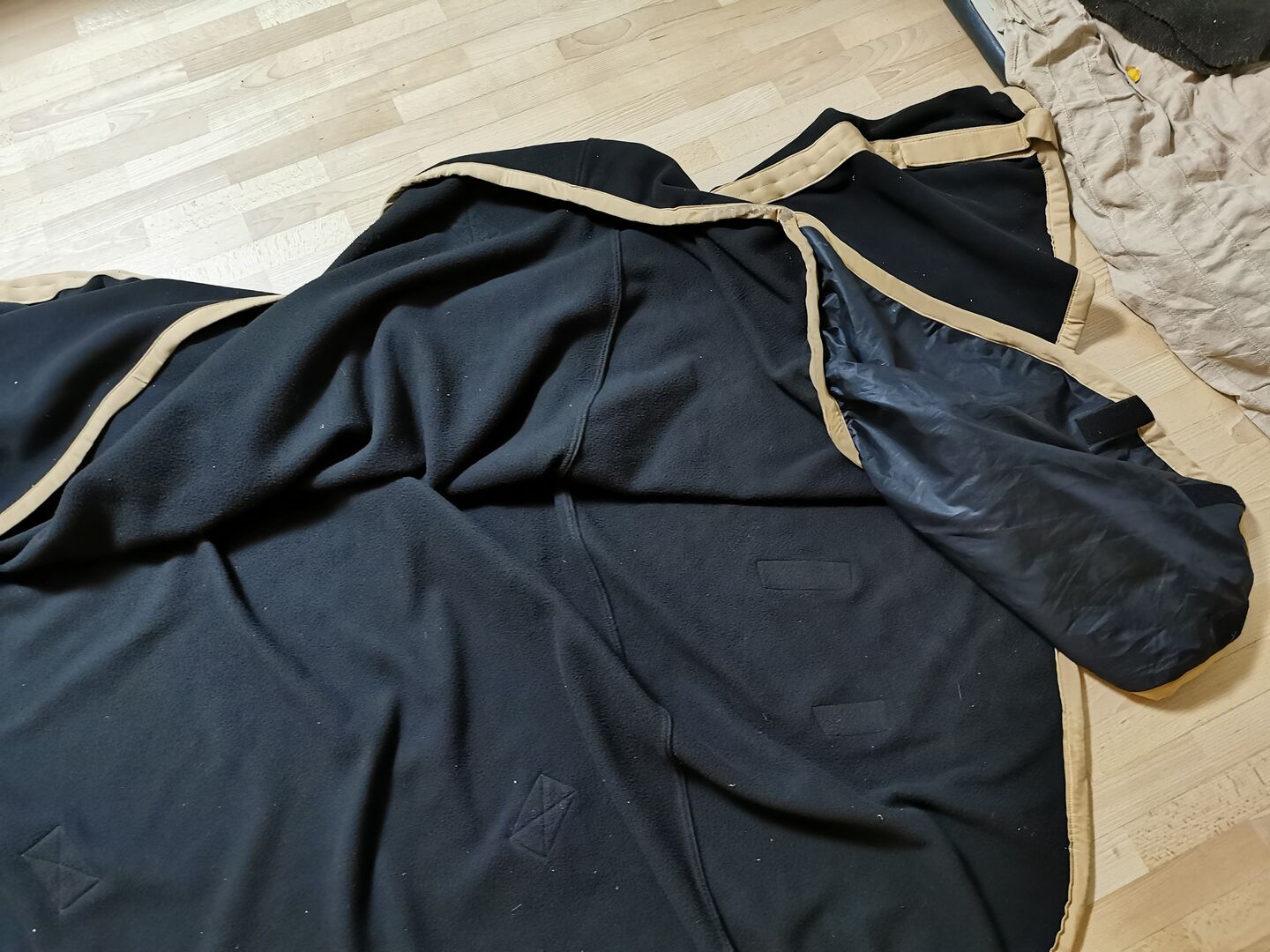 sweat rug with neck piece - Sell very little used sweat blanket with neck part.... The neck part is firmly attached and you can close it at the front of the chest super... Furthermore, it has closures for belly straps... In black brown... Size WB 155 cm... Price is with shipping