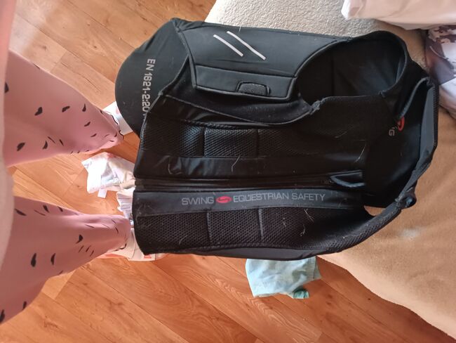 SWING riding safety vest - size M - For sale a riding safety vest from Swing (Equestrian Safety). Standard: EN 1621-2 (back protector) Color: Black Condition: used, but fully functional (see photos) Individually adjustable with Velcro fasteners Ideal for beginners or leisure riders.