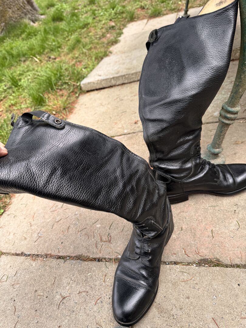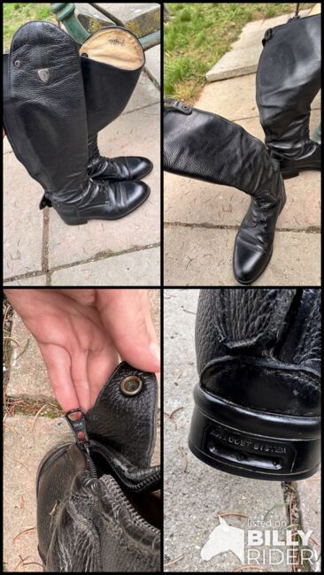 Tattini riding boots, soft leather, air boost system, black size 37 - Calf around 33 - but they also have elastic. I like to wear them for jumping but unfortunately they are now too big for me. :-(