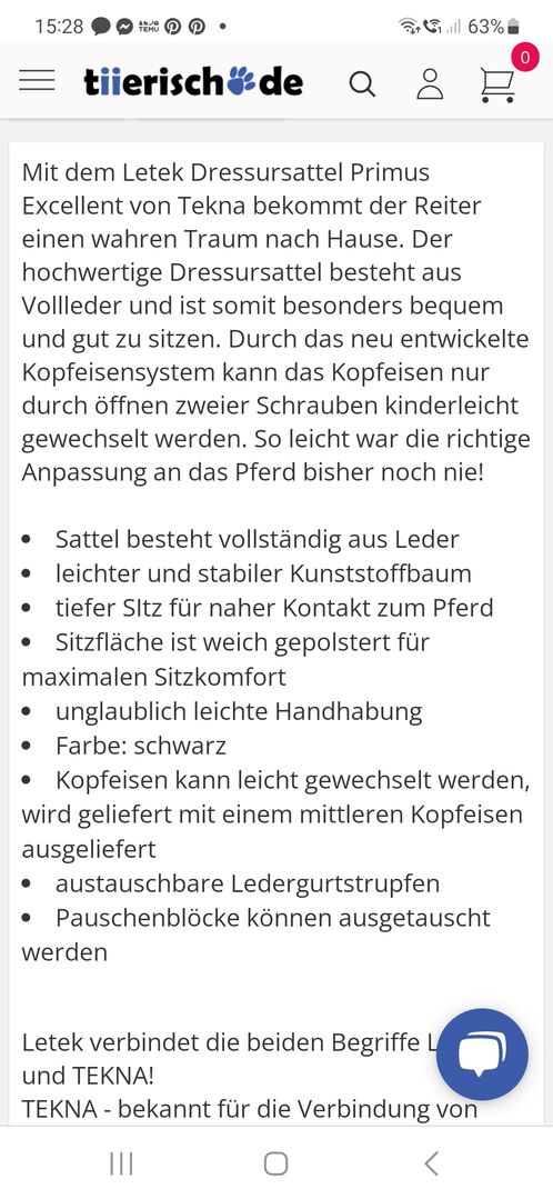 Tekna Letek Excellent dressage saddle 19 inch - I am selling my Tekna saddle in full grain leather, which has only been used a few times. the saddle looks like new as my horse is unfortunately no longer rideable. the description can be seen in the photos. the gullet plate is included.